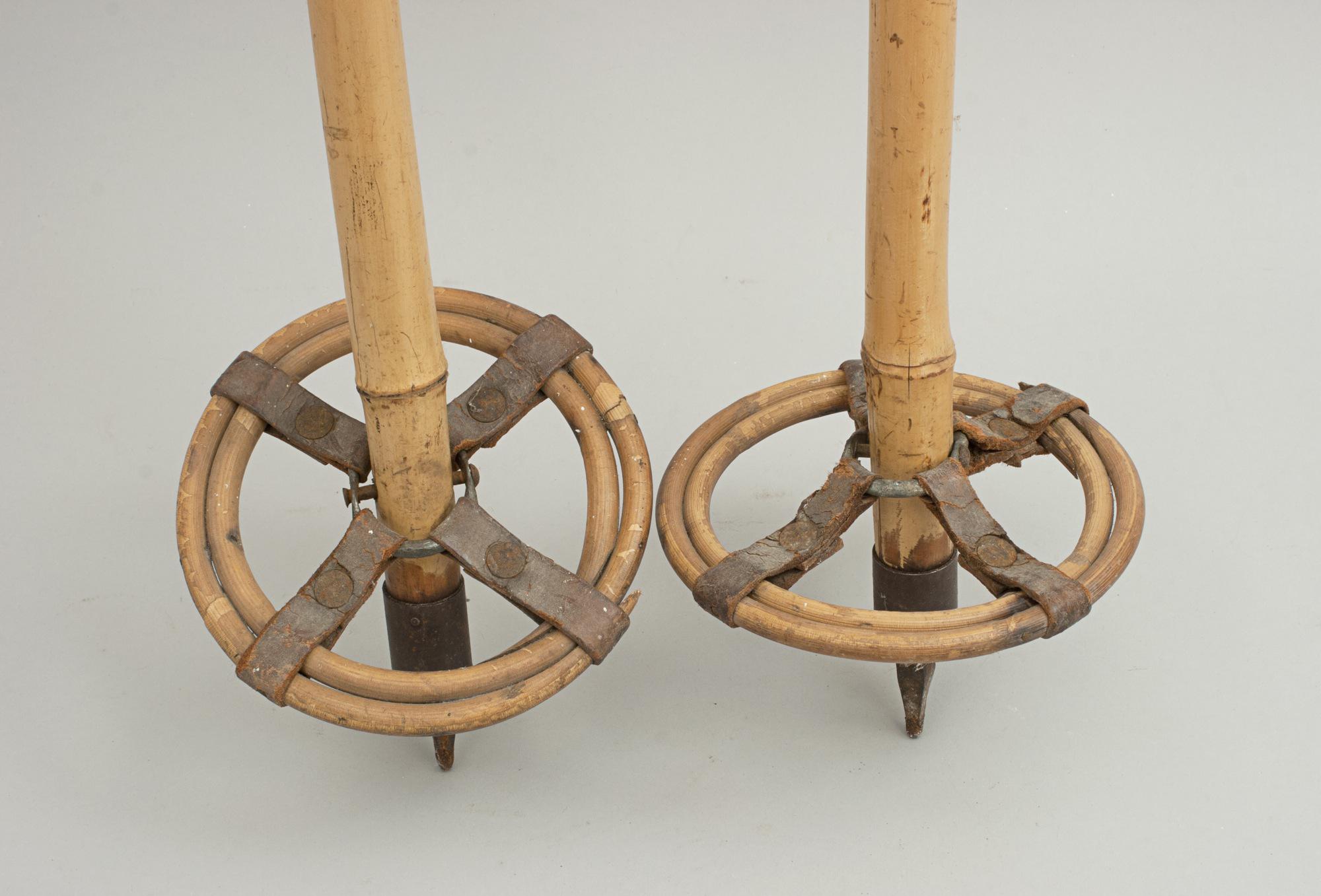 Early Thick Bamboo Ski Poles.