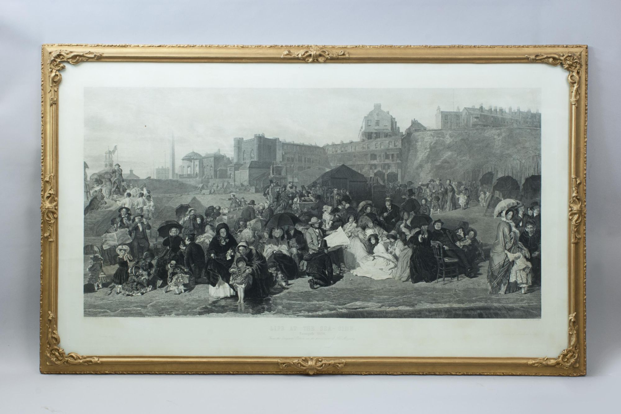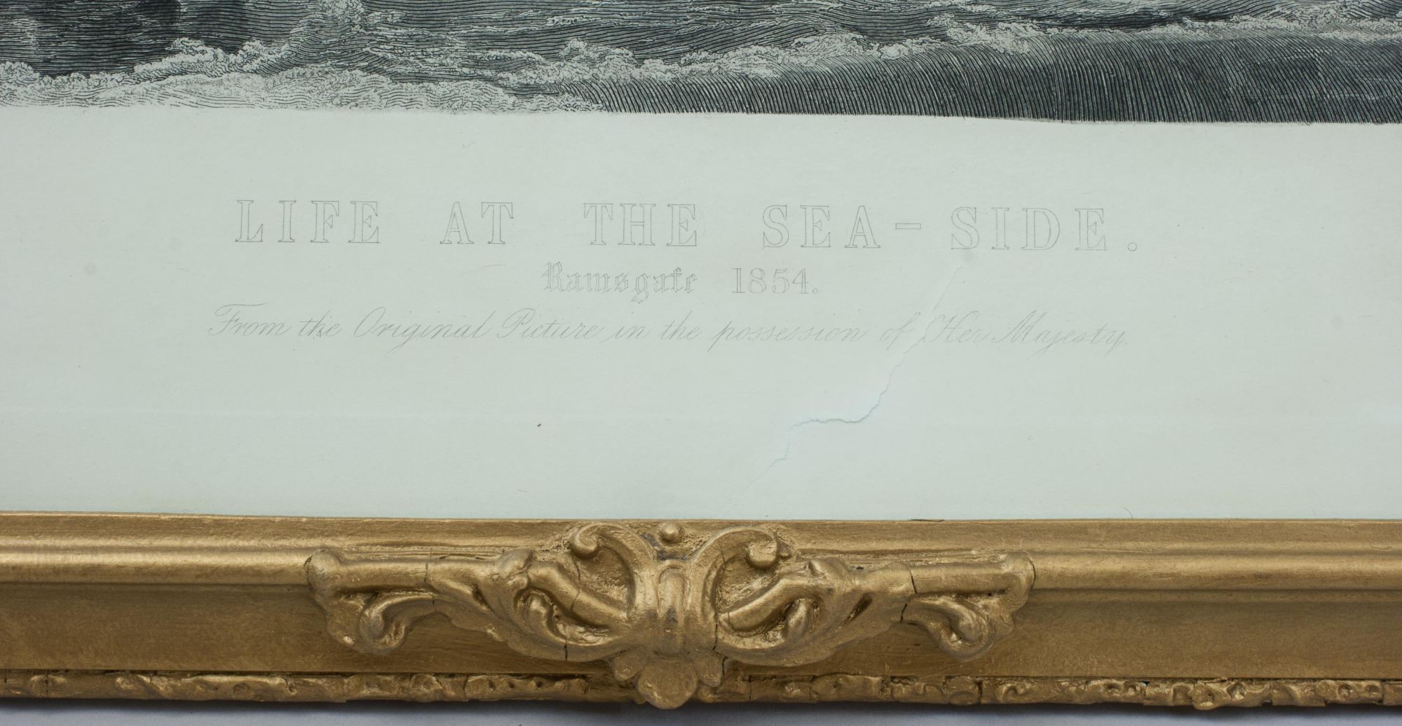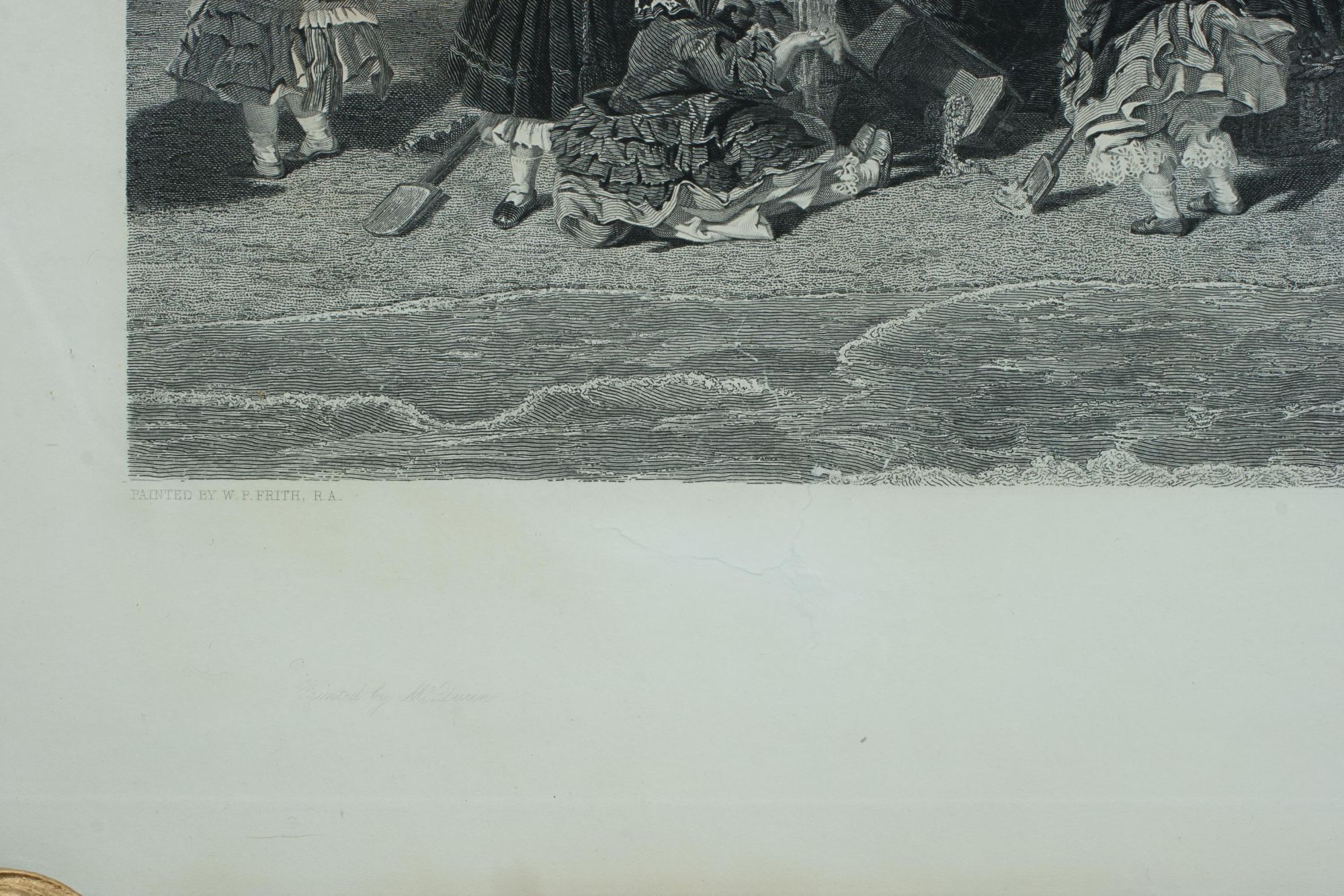 An exceptional and impressively detailed Victorian engraving by C. W. Sharpe, after William Powell Frith's celebrated oil painting Ramsgate Sands - more simply known as Life at the Sea-Side, Ramsgate 1854. The engraving was taken from the original painting in the possession of Her Majesty Queen Victoria. This work marks Frith's first great panoramic narrative of modern life, vividly capturing the hustle and bustle of Victorian society at leisure by the sea.