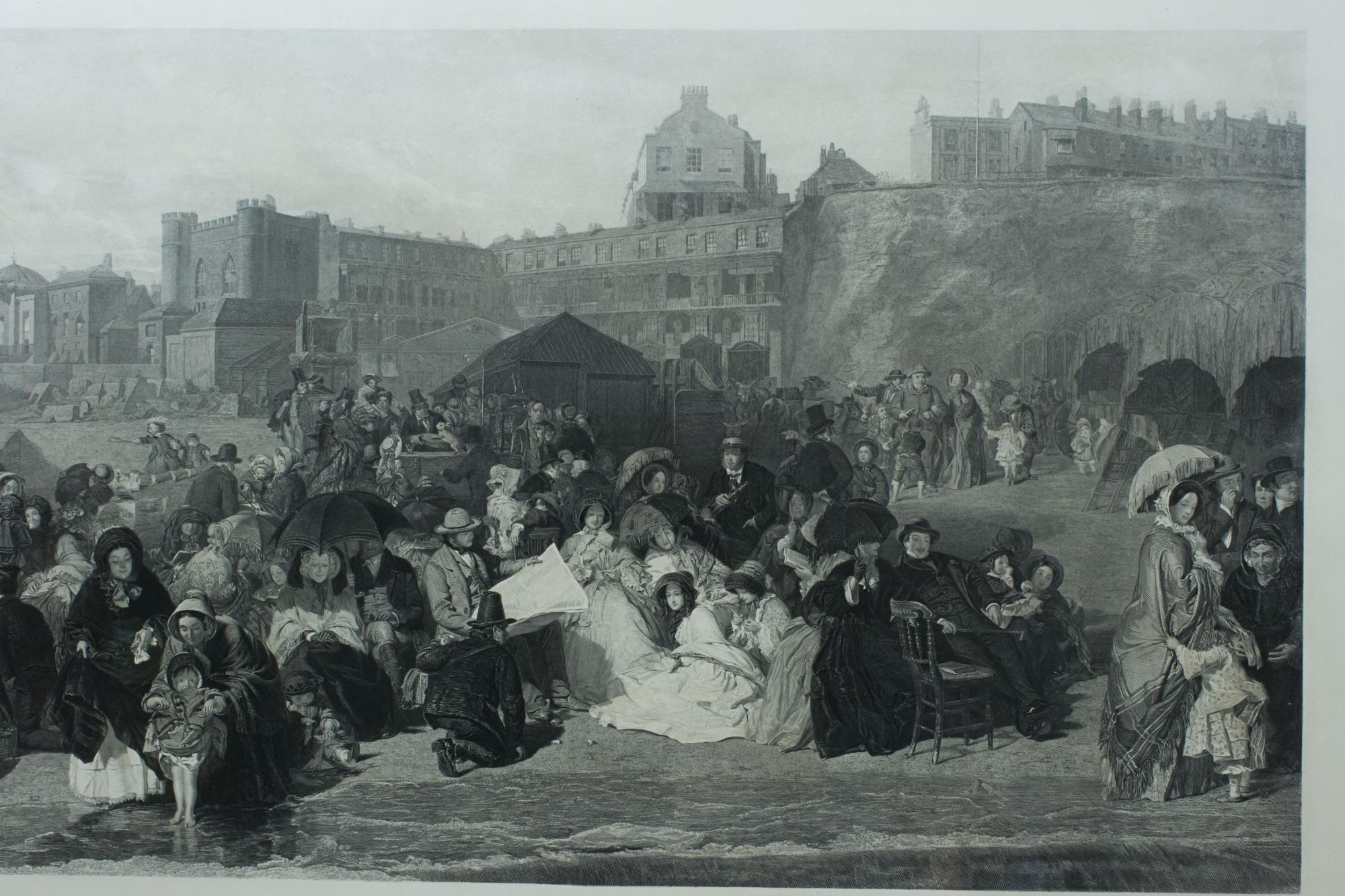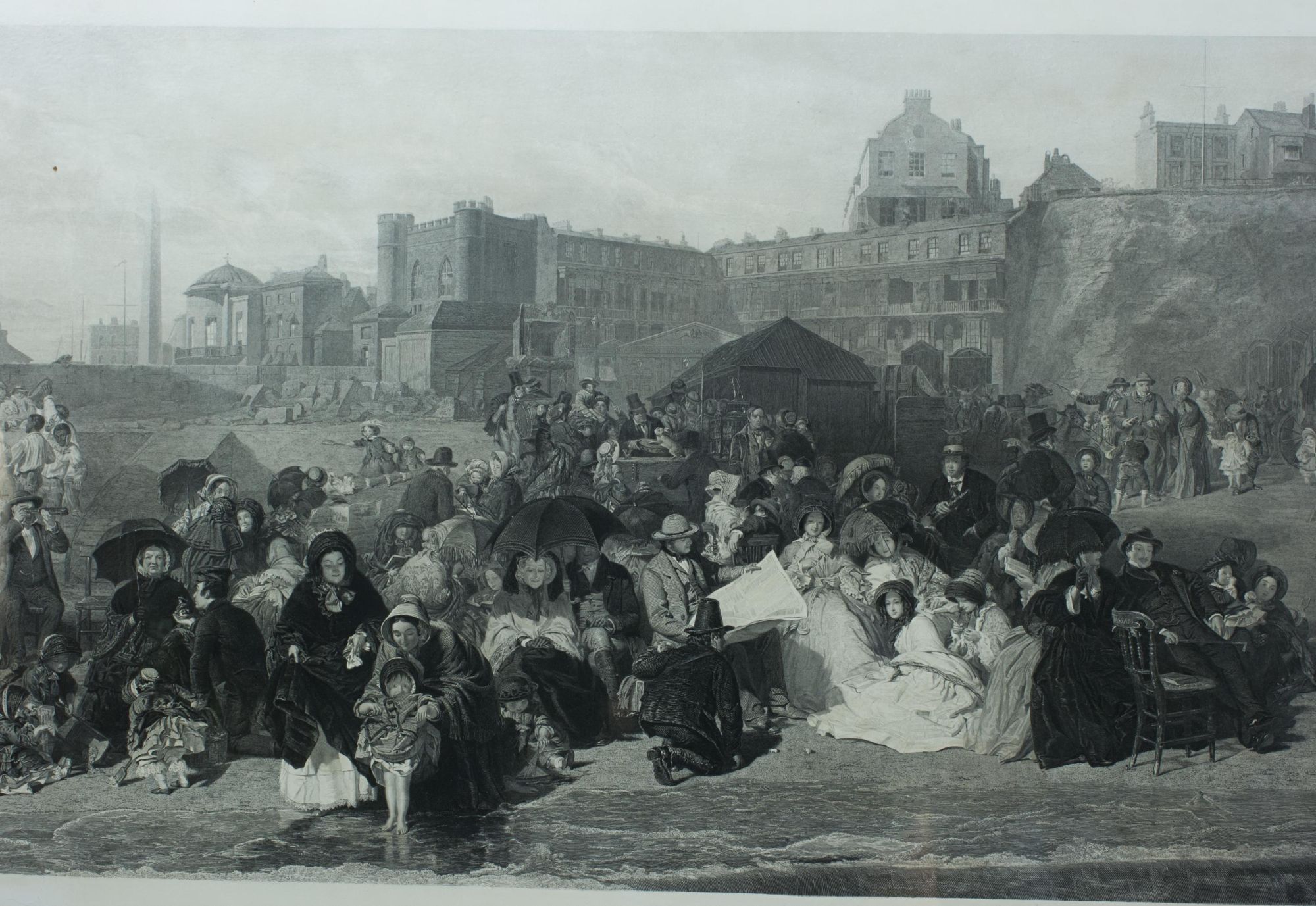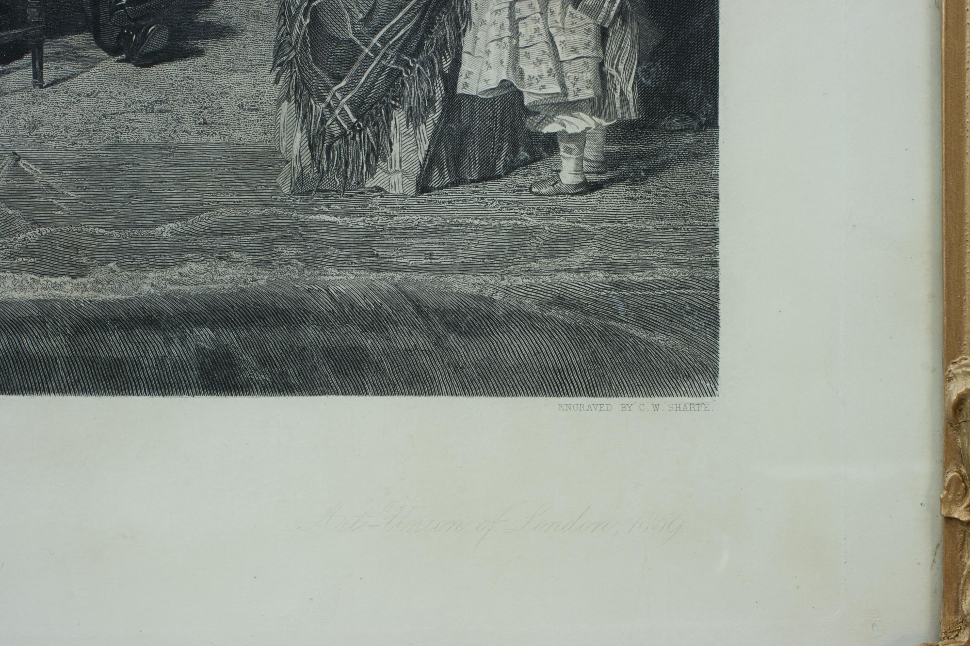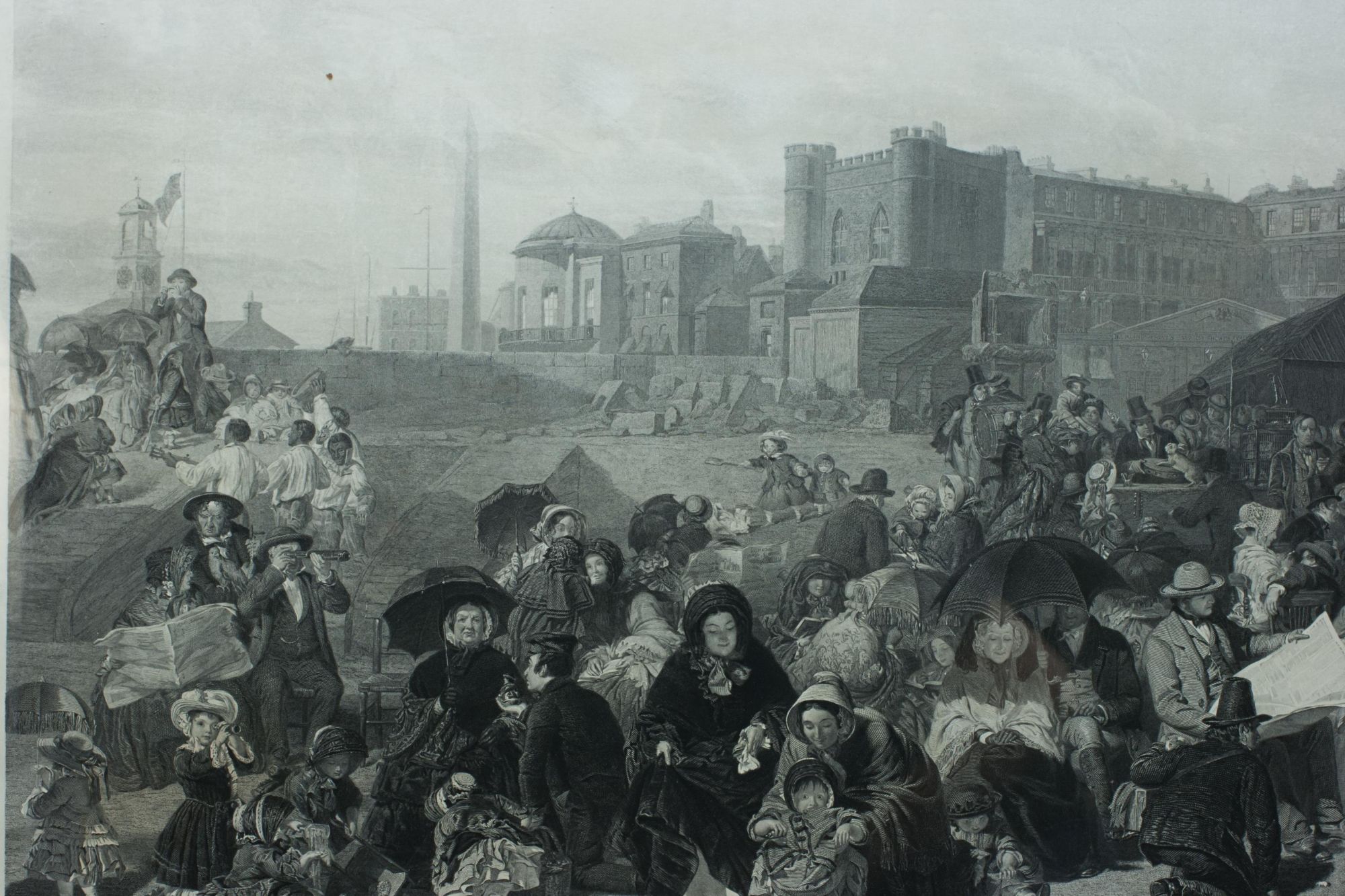 An exceptional and impressively detailed Victorian engraving by C. W. Sharpe, after William Powell Frith's celebrated oil painting Ramsgate Sands - more simply known as Life at the Sea-Side, Ramsgate 1854. The engraving was taken from the original painting in the possession of Her Majesty Queen Victoria. This work marks Frith's first great panoramic narrative of modern life, vividly capturing the hustle and bustle of Victorian society at leisure by the sea.