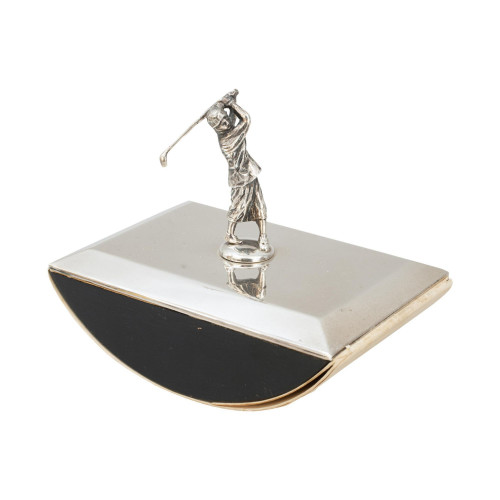 A Victorian silver plated croquet toast rack which can also be used as a letter rack or napkin holder. The dividers are in the shape of crossed croquet mallets, the central divider with a hoop and ball handle. The base with four croquet ball feet and stamped with Registration Design diamond stamp, 14th June 1871.