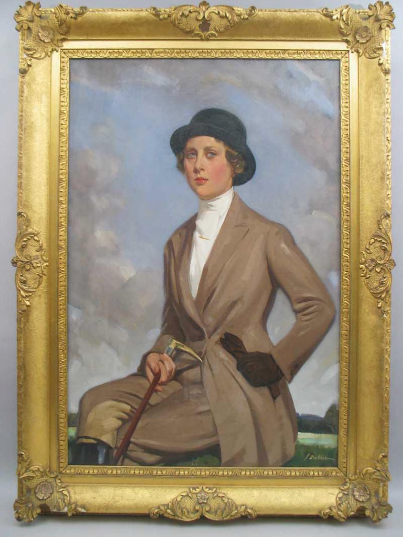 Oil on canvas of a Hunting Lady. Miss Jean Wills, by John Dobie