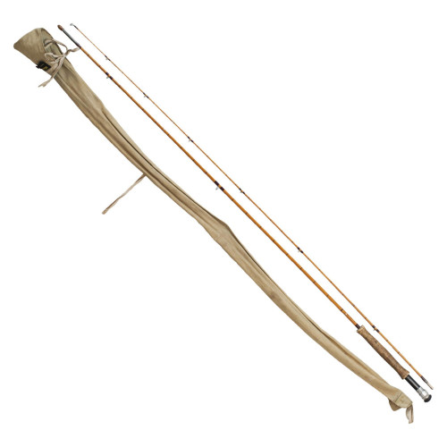 A beautifully 2 piece 9' split cane fly fishing rod by Hardy of Alnwick. The rod is in very good condition with the registration number H63763, dating it to 1970's. It has the inscription spiralling around the rod, 'The "Perfection" Palakona Regd Trade Mark, #5'. The rod is a 2 piece rod with blue hardy canvas bag, bronze ferrules, suction joints, cork handle with alloy screw reel fitting. Hardy were the first manufacturer to make split cane rods in hexagonal form as The Hardy 'Palakona' rod.