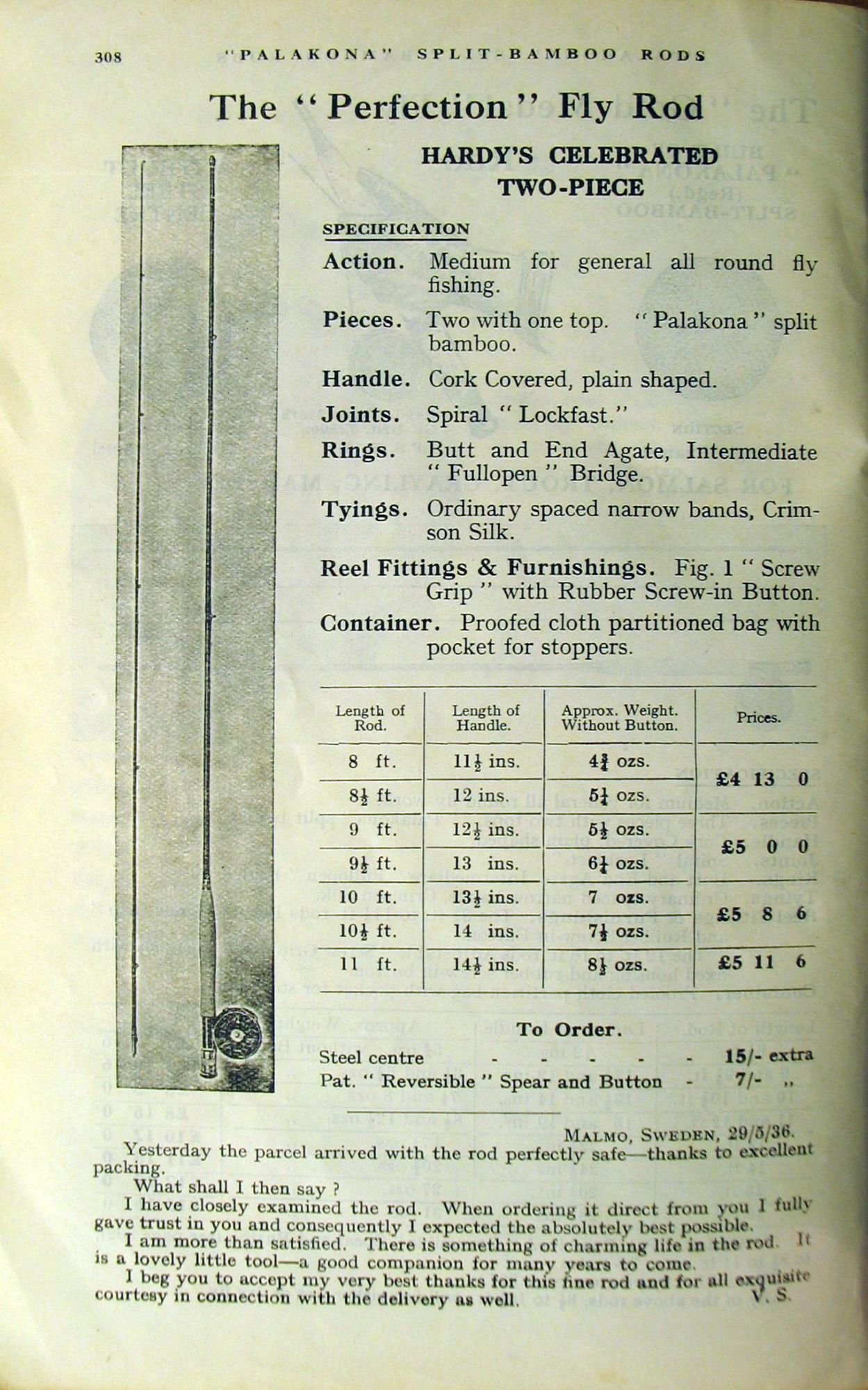 Showing is also a Hardy's Anglers' Guides 1937 catalogue entry for the rod.