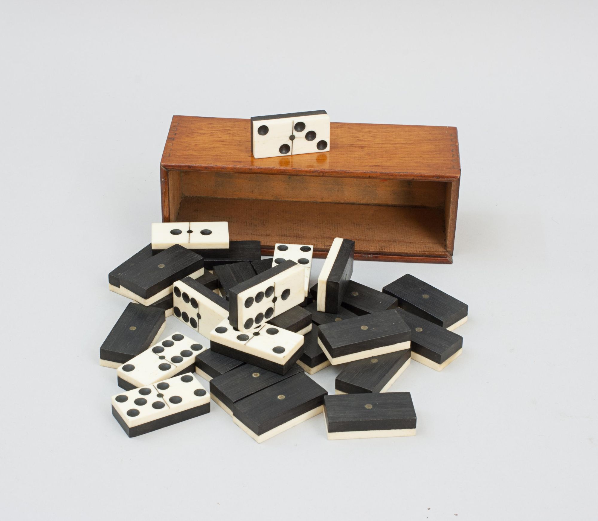 Vintage Double Six Domino Set in Original Wooden Box.