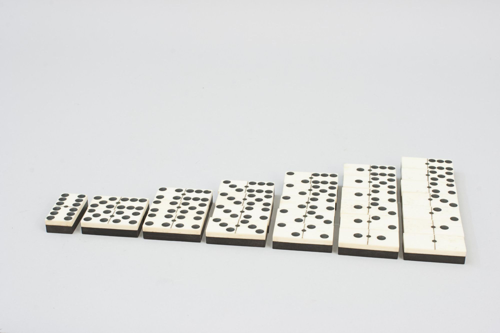 Domino size: 4½ cm wide, 2 ½ cm deep, 1 cm high.