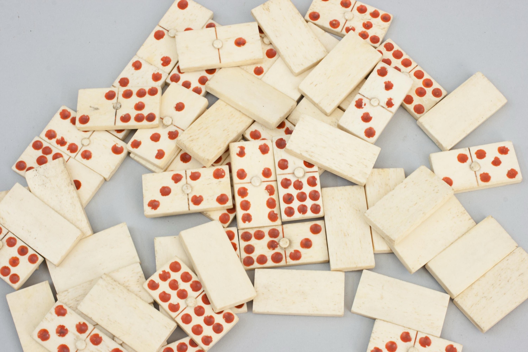 Domino size: 4½ cm wide, 2¼ cm deep, ½ cm high.