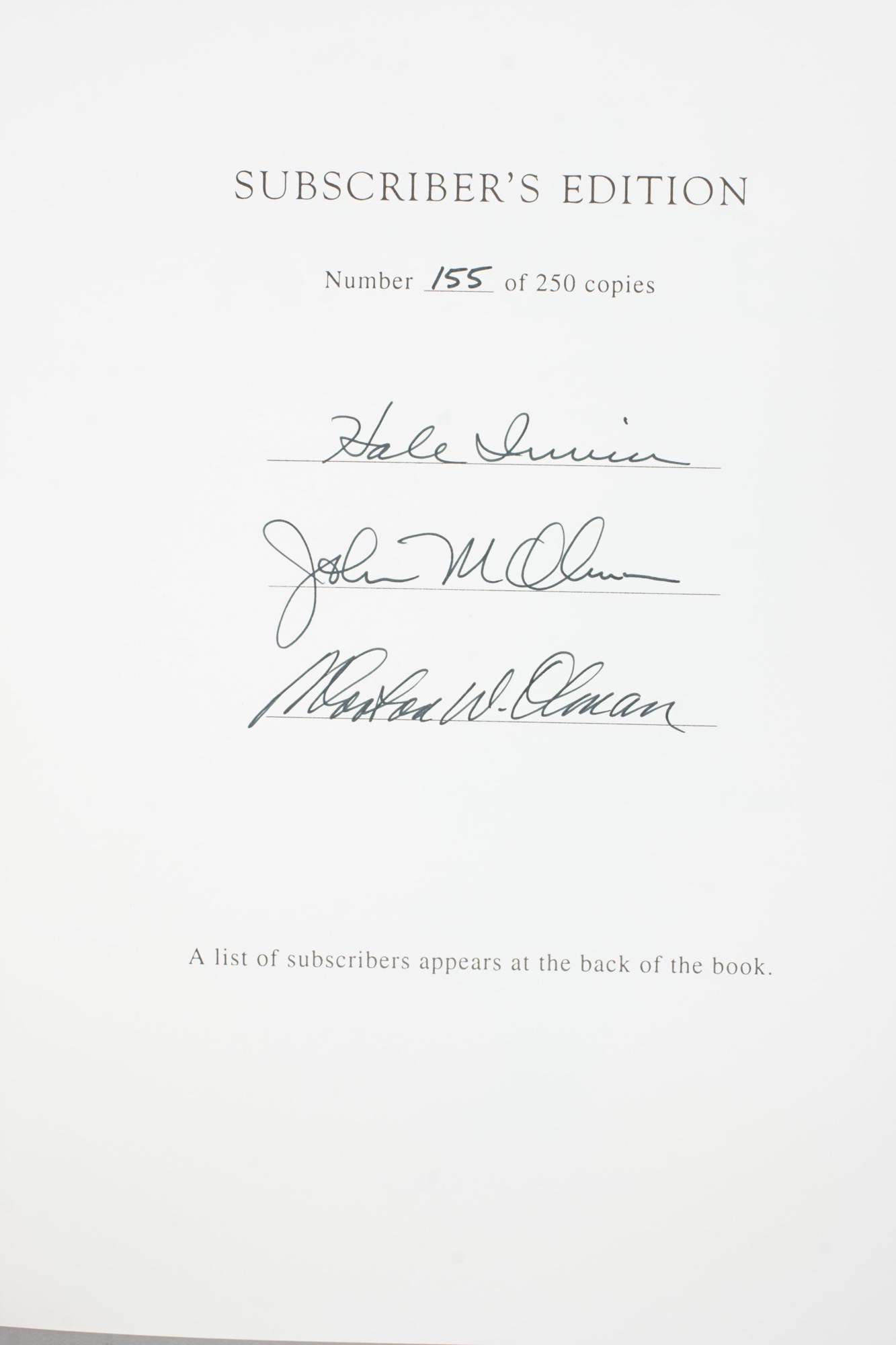This Subscriber's Signed Limited Edition (No. 155 of 250) is elegantly bound in leather and housed in a matching protective slipcase. Published in 1992, this first edition includes a foreword by U.S. Open Champion Hale Irwin, and is personally signed by both authors, John M. Olman and Morton W. Olman, as well as Hale Irwin himself.