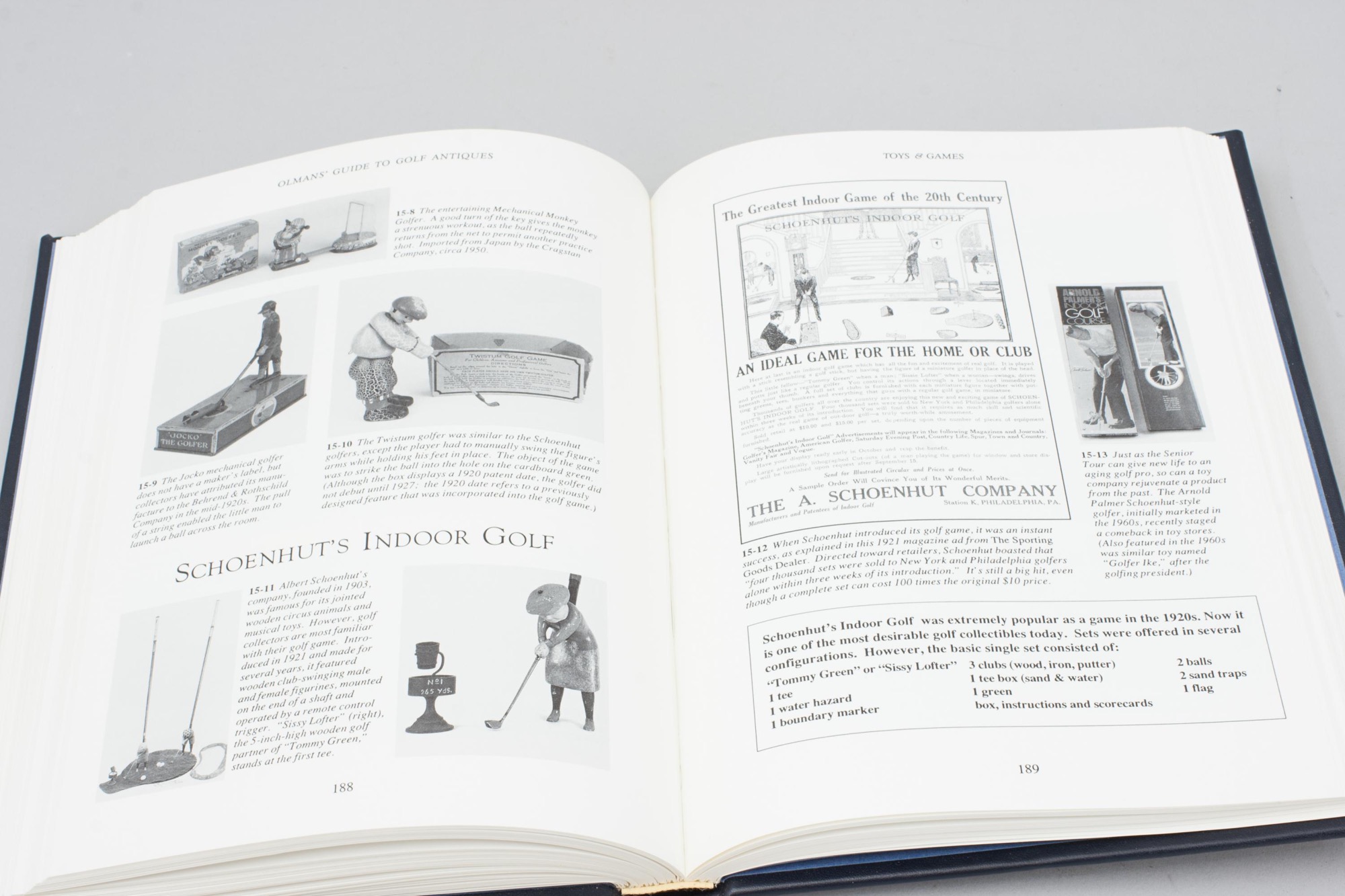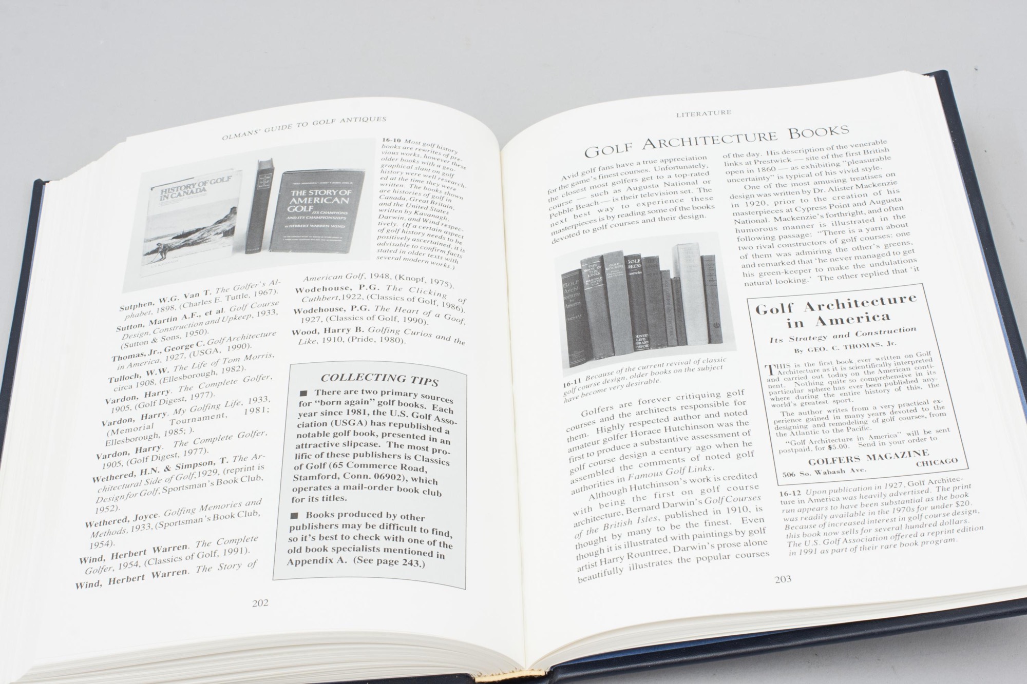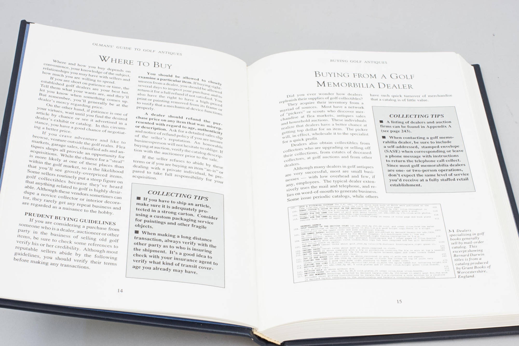 A landmark reference book for golf enthusiasts and collectors alike, Olman's Guide to Golf Antiques & Other Treasures of the Game.
