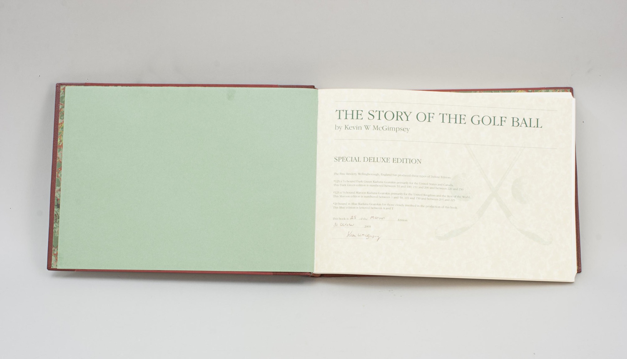 This Special Deluxe Limited Edition is bound in rich maroon quarter leather and presented in a matching slipcase, produced exclusively for the UK and international market. Published in 2003, this first edition is signed and hand-numbered by the author, with this copy being No. 25 of just 125 produced.