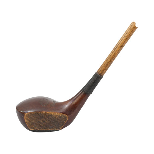 A good original example of 'The Scuffler' by the Stadium Golf Co. This is an unusual chipper with a unique head shape having a low profile blade with 25° lofted face, with the face, crown, back and sole all being flat. The face with square dot punched markings. The club head stamped with the 'anchor' mark of the Stadium Golf Co., London. Stadium did not forge their own club heads, but instead had them made by the well known cleek makers, the Gourlays.
