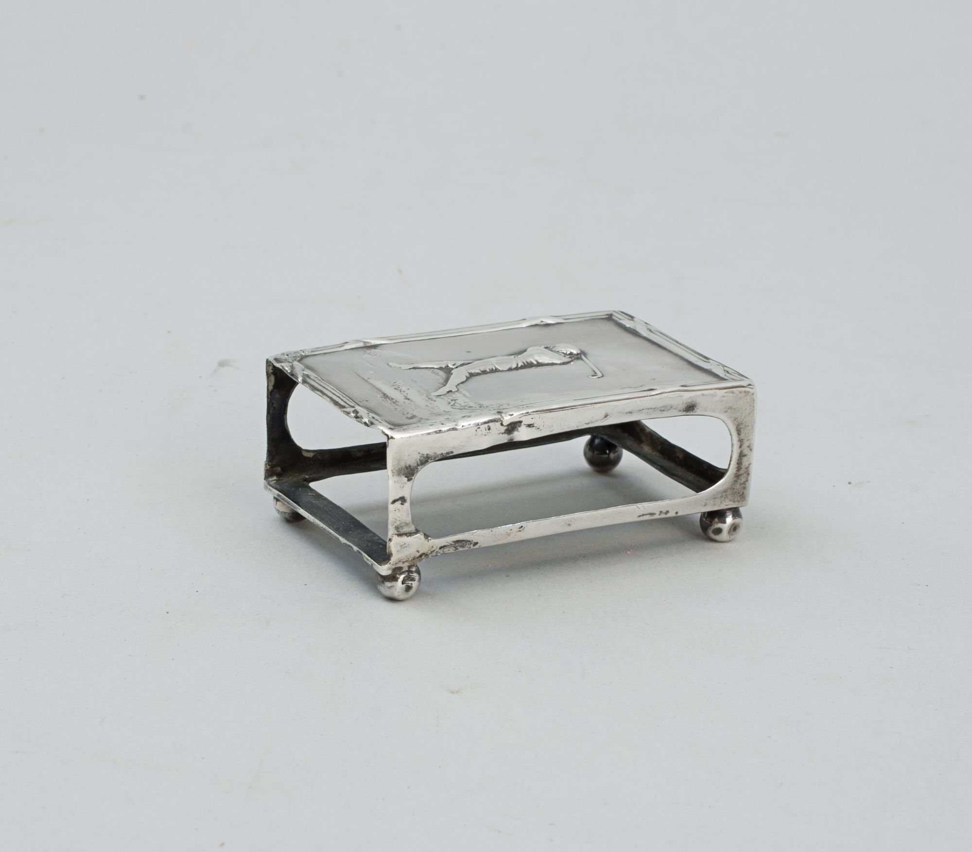 This matchbox holder exemplifies the quality and craftsmanship of Henry Matthews. It is an unusual and distinctive example of a functional yet decorative accessory from the period and is accompanied by a vintage matchbox for display.