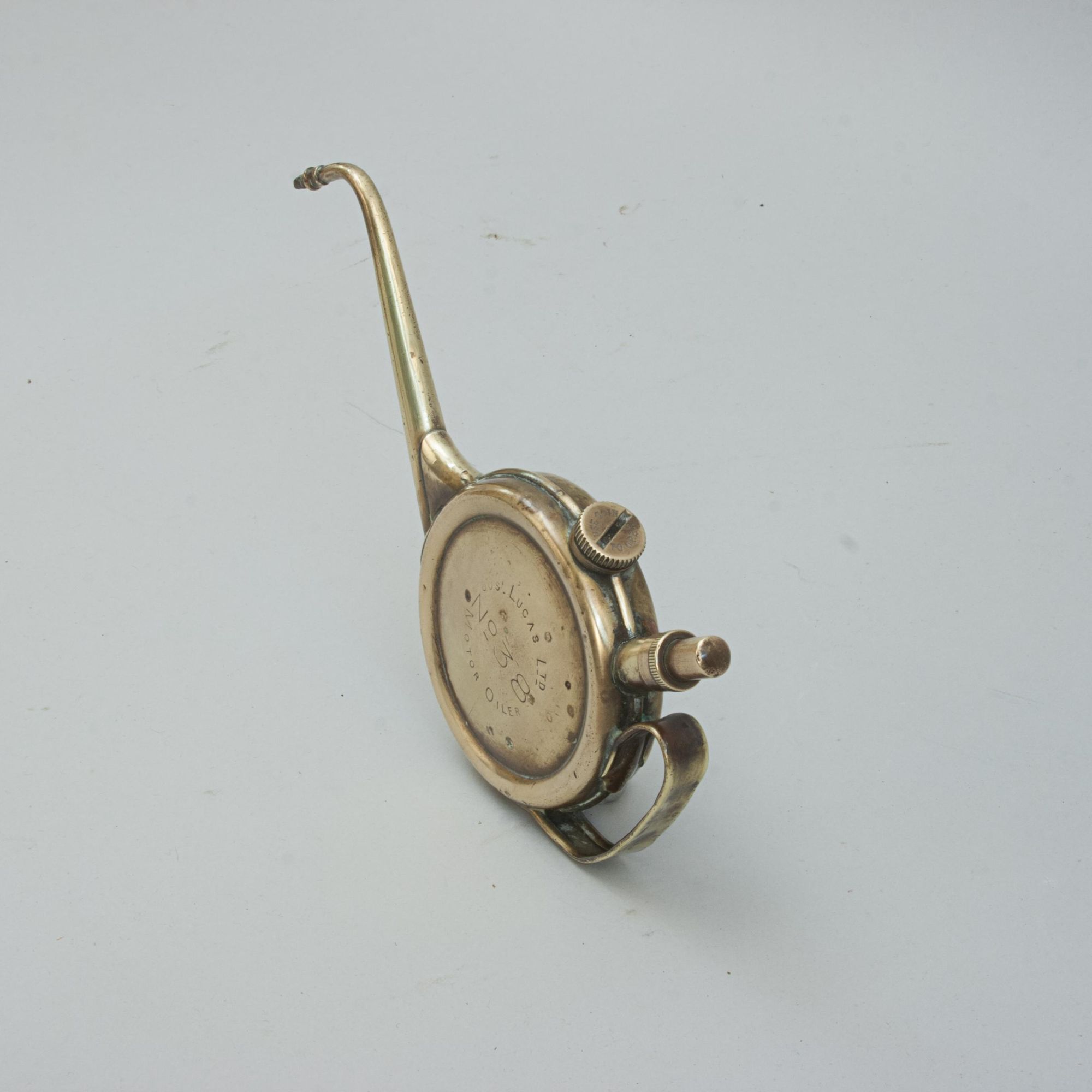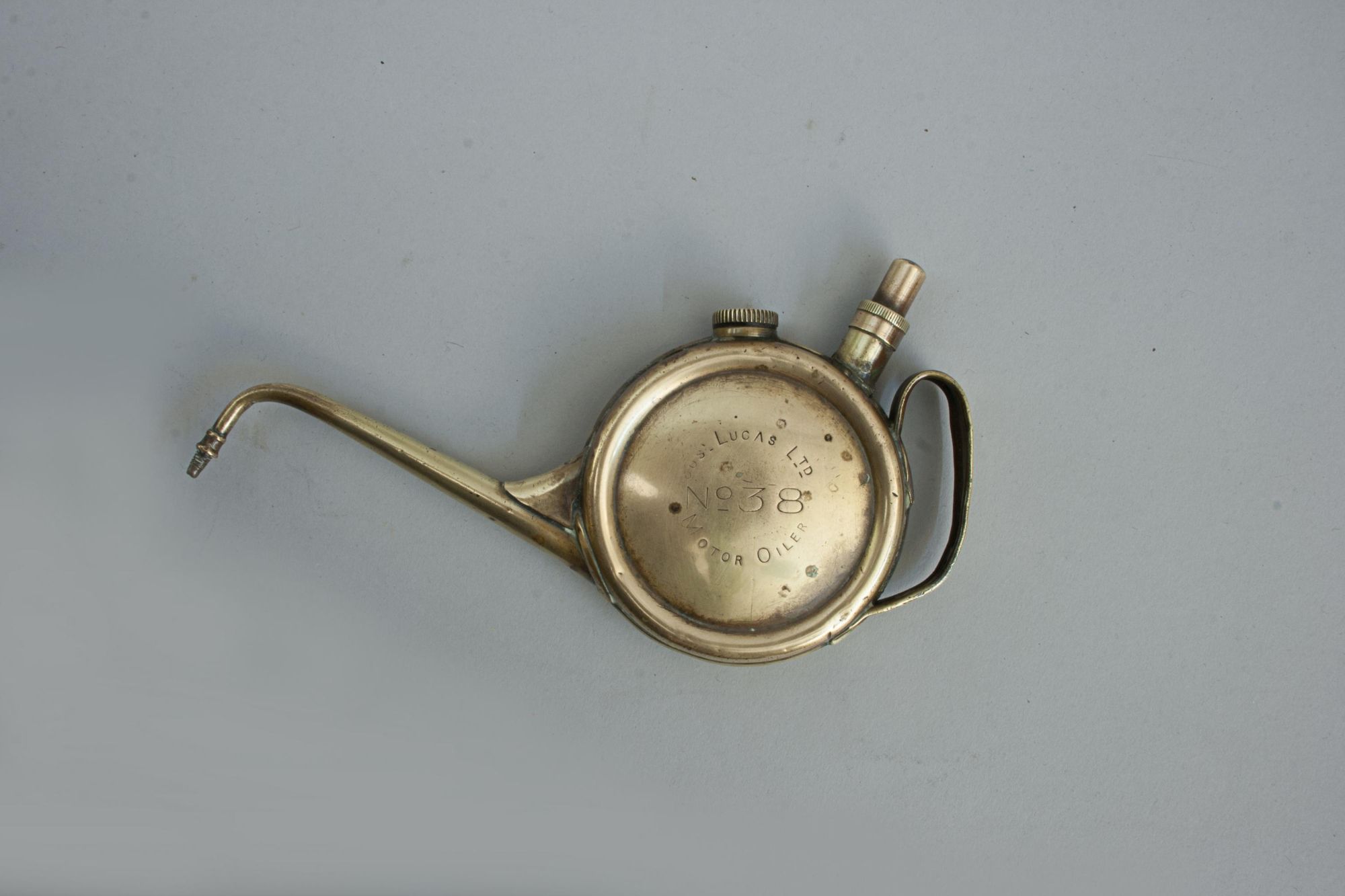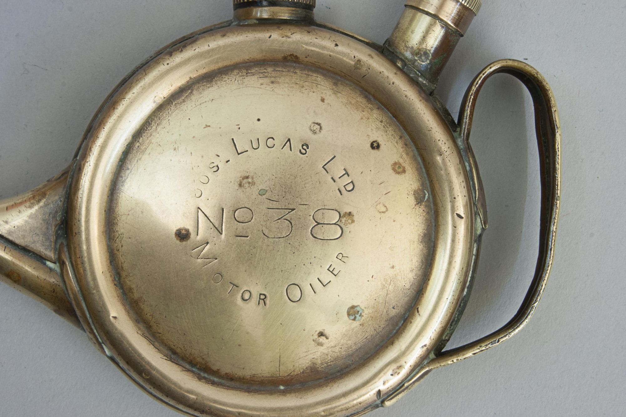 An automotive oil can made by Joseph Lucas, Birmingham. A fantastic piece of vintage motoring ephemera, the perfect gift for the motoring enthusiast. Who would have thought the mundane garage oiler of the Golden Age of automobiles would be a collector's piece. The motorist's oil can engraved to the front 'JOS' LUCAS Ltd, No 38 Motor Oiler, 'Use Coin To Open' engraved on the brass screw filler lid.
