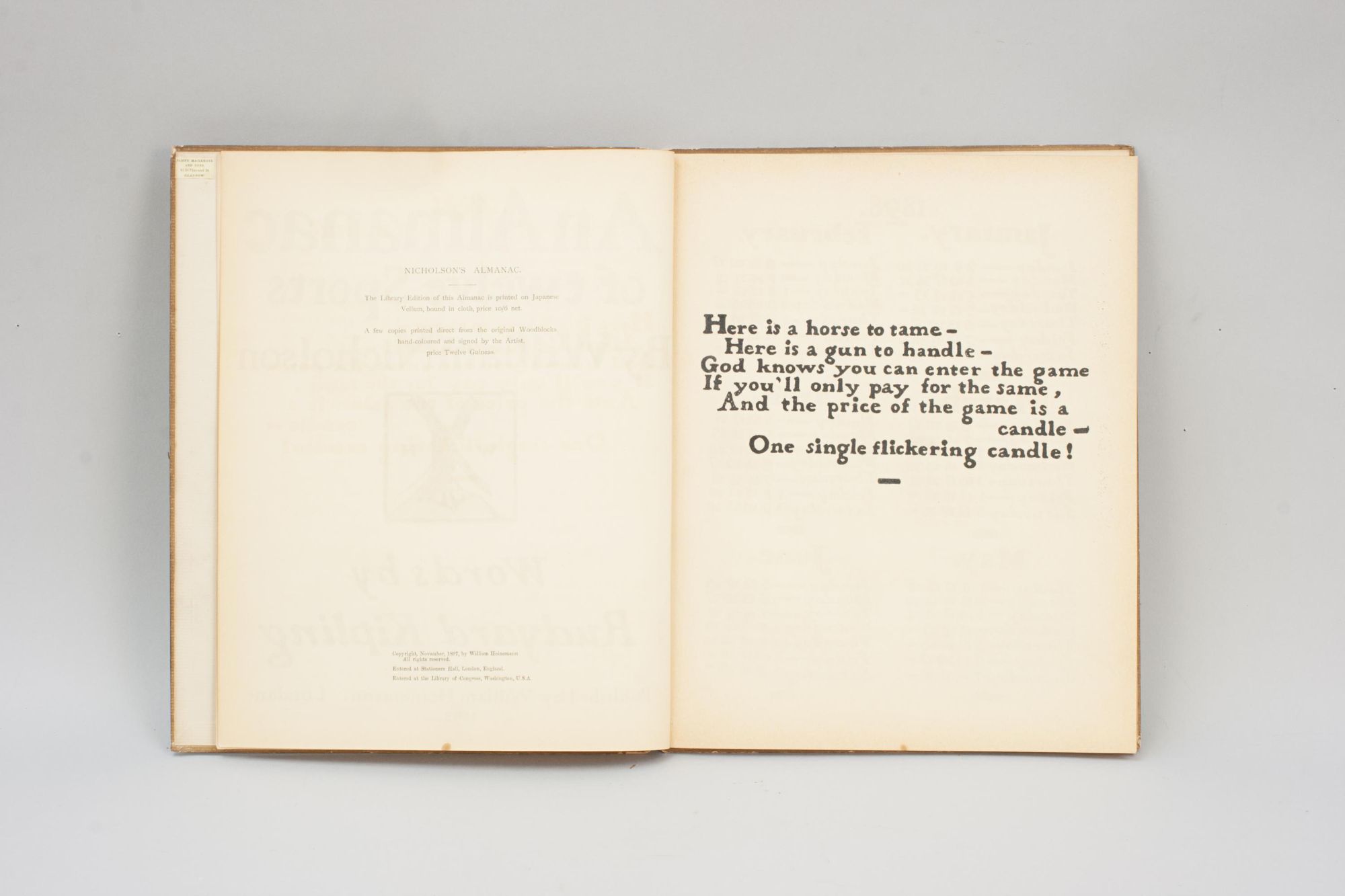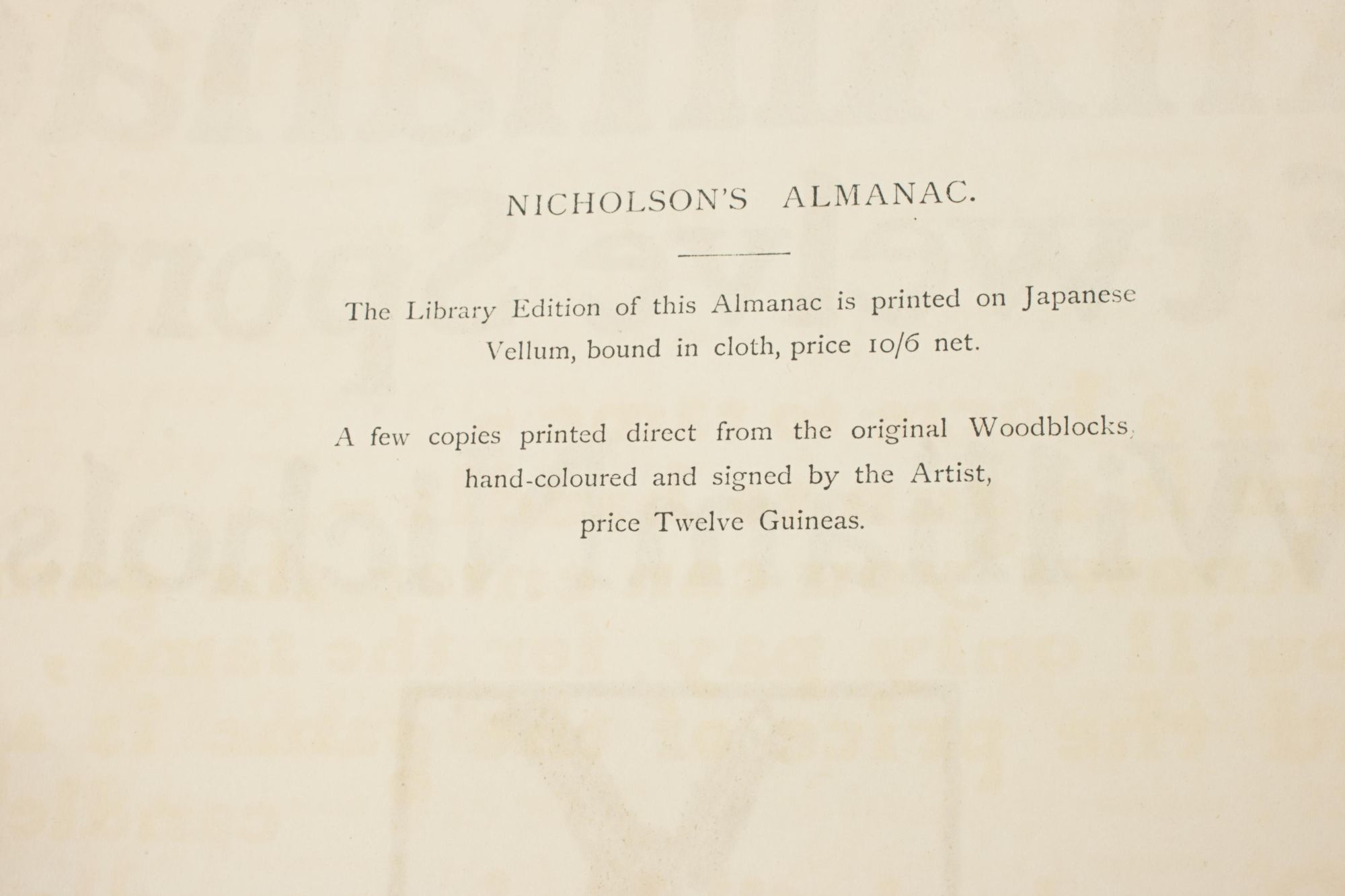 As stated at the back of this book, a companion to this Almanac, AN ALPHABET, by William Nicholson was also available.