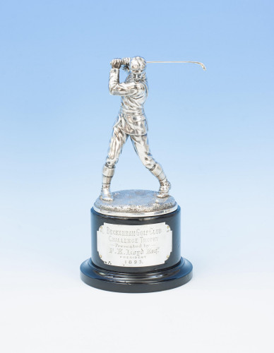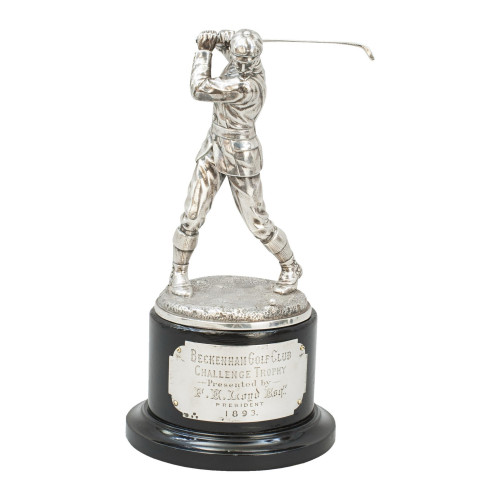A Victorian silver plated tennis toast rack which can also be used as a letter rack or napkin holder. The dividers are in the shape of five sets of crossed flat top rackets with diamond stringing, the central rackets with a ring handle, all mounted on a shaped base with four ball feet. The base stamped with Aladdin Genie Lamp symbol, R & B, S, CB, Fleur de Lys (Prince of Wales feathers) & 3890.