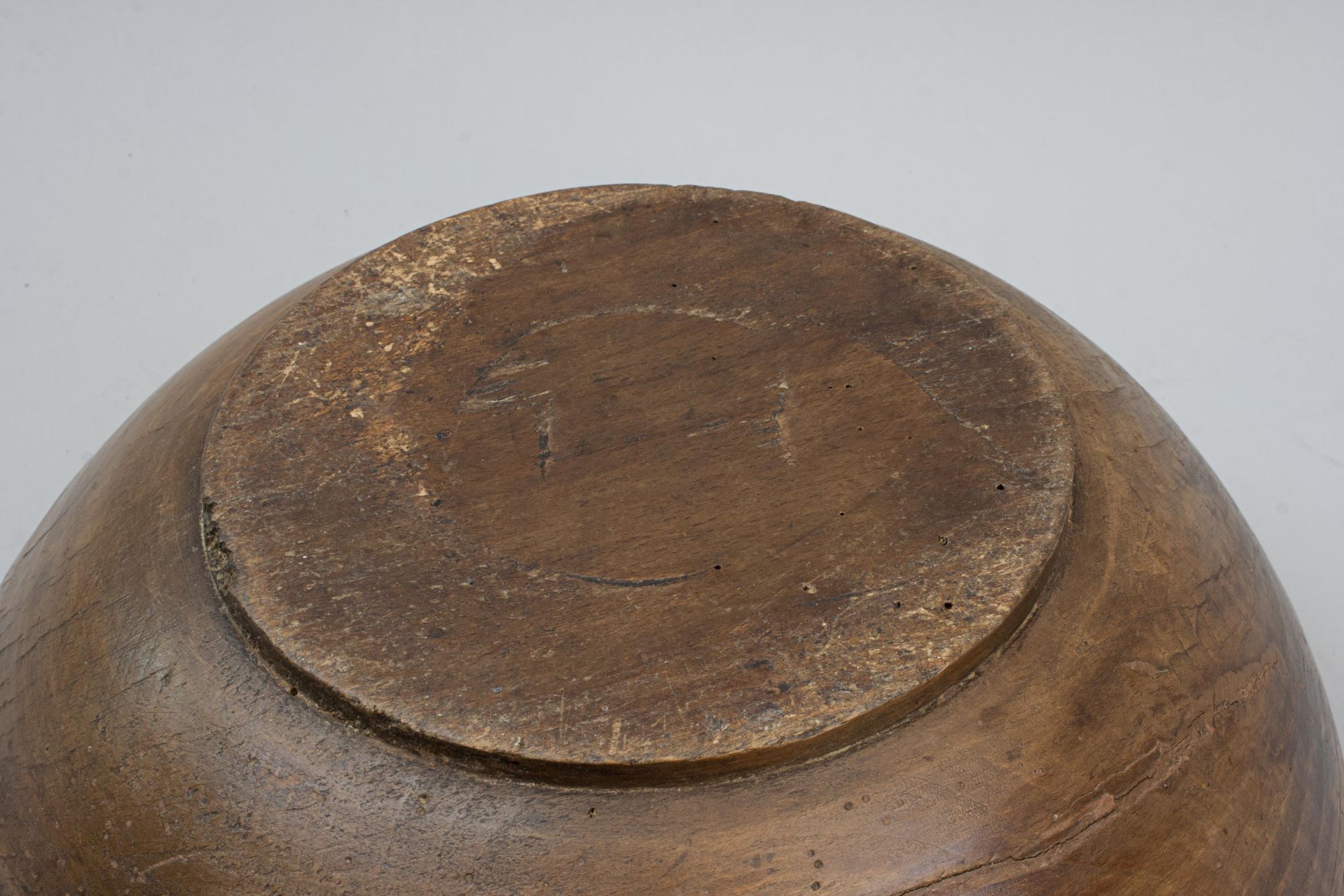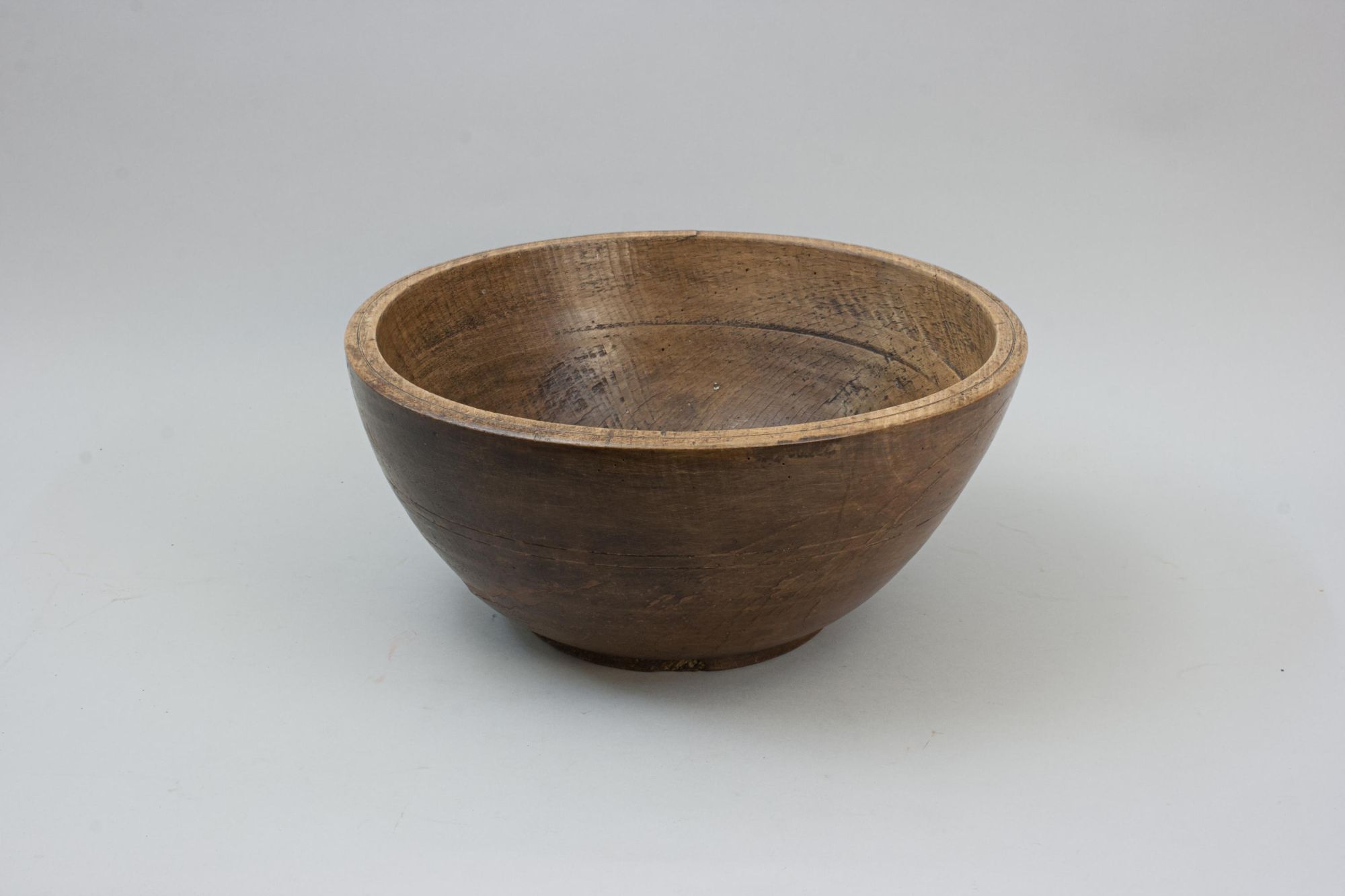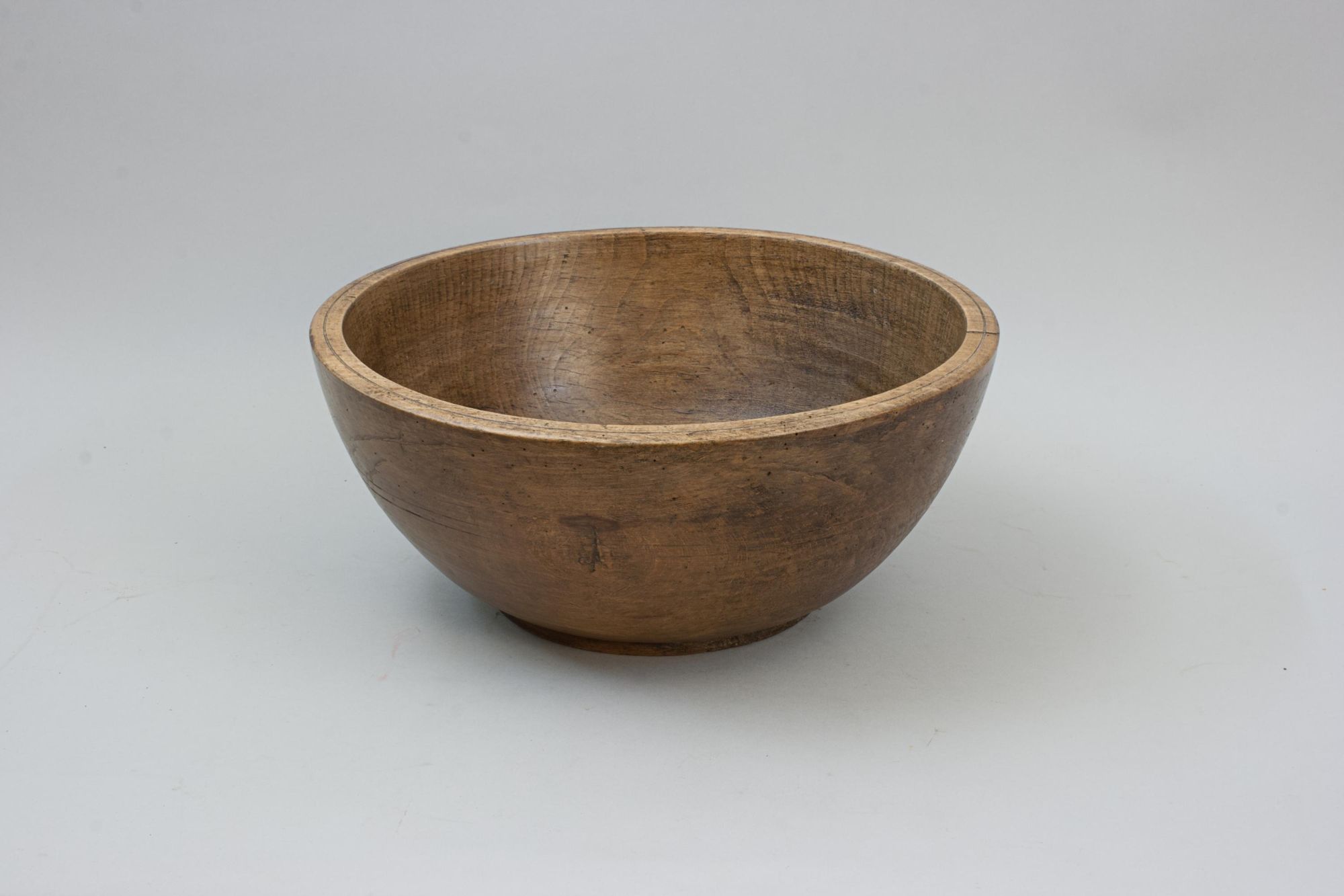 A nice piece of late 19th century Treen. This lovely turned bowl has a good thick rim, twin tram lines a little further down the body and is probably made of sycamore wood. A great looking fruit bowl or display bowl.