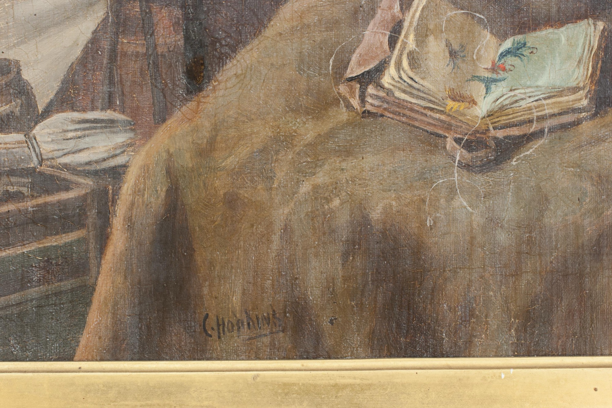 A wonderful pair of fishing oil paintings depicting an old Scottish gentleman. The paintings are on relined canvas; one is signed C. Hopkins, and both are housed in gilt frames.