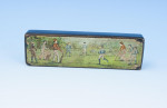 Ebonised Pencil Box With Cricket Scene On The Lid