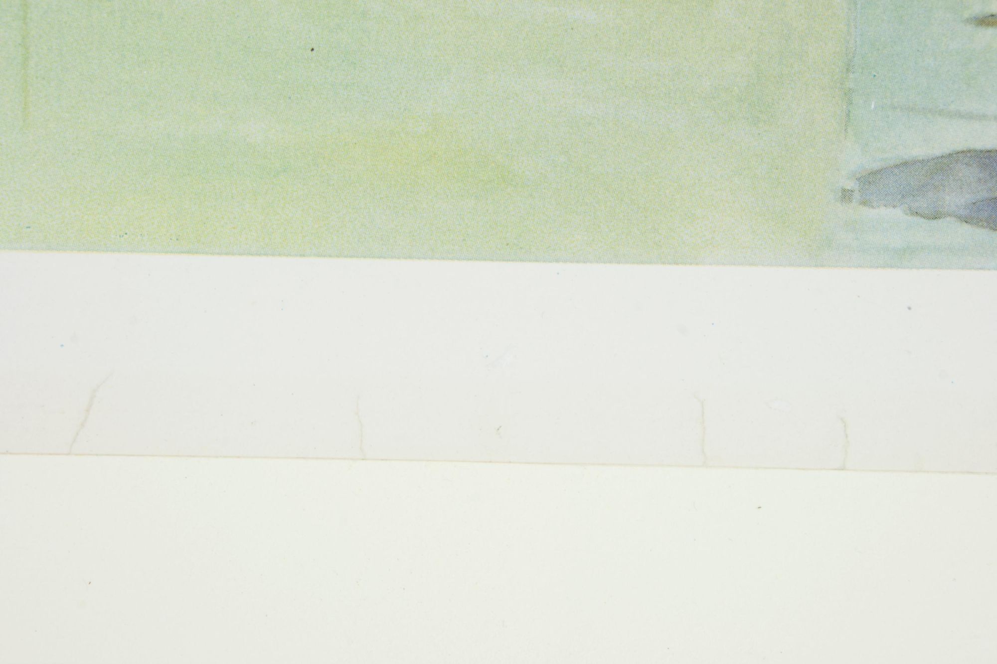 The poster has been fixed onto mount card, edges are good. Three or four old creases on the right hand side of the poster, but are hidden by the mount. The last four images are of the poster out of its frame.