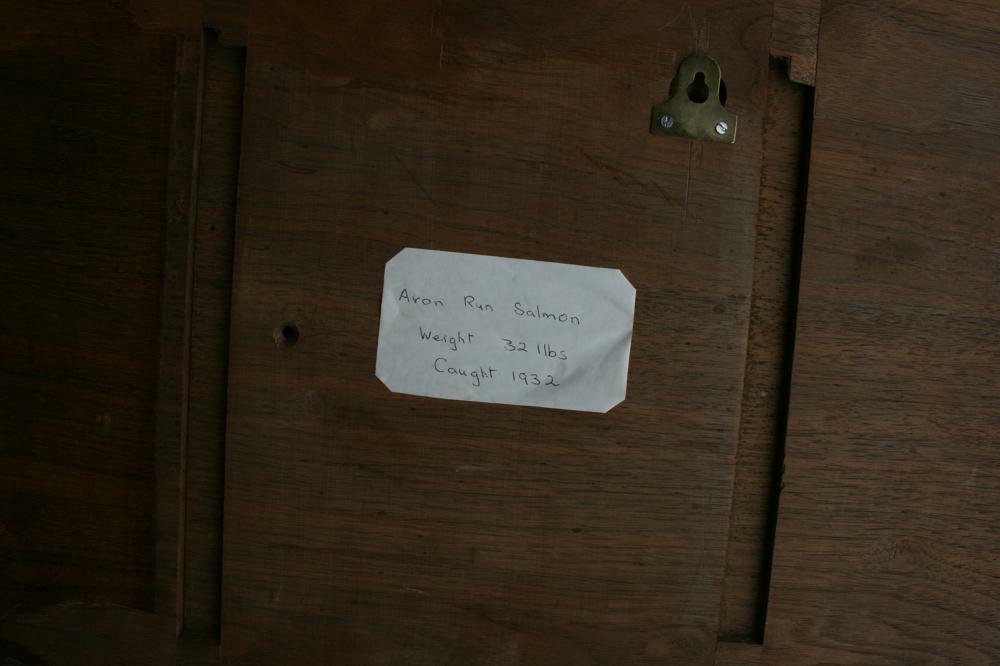 This is a fine example of a Salmon carving in excellent condition. The fish is mounted on a later walnut board with a paper label on the back of the board stating "Avon run Salmon, weight 32lbs, caught 1932". This is most probably one of the Fochaber fish painted by Isabella Tully.