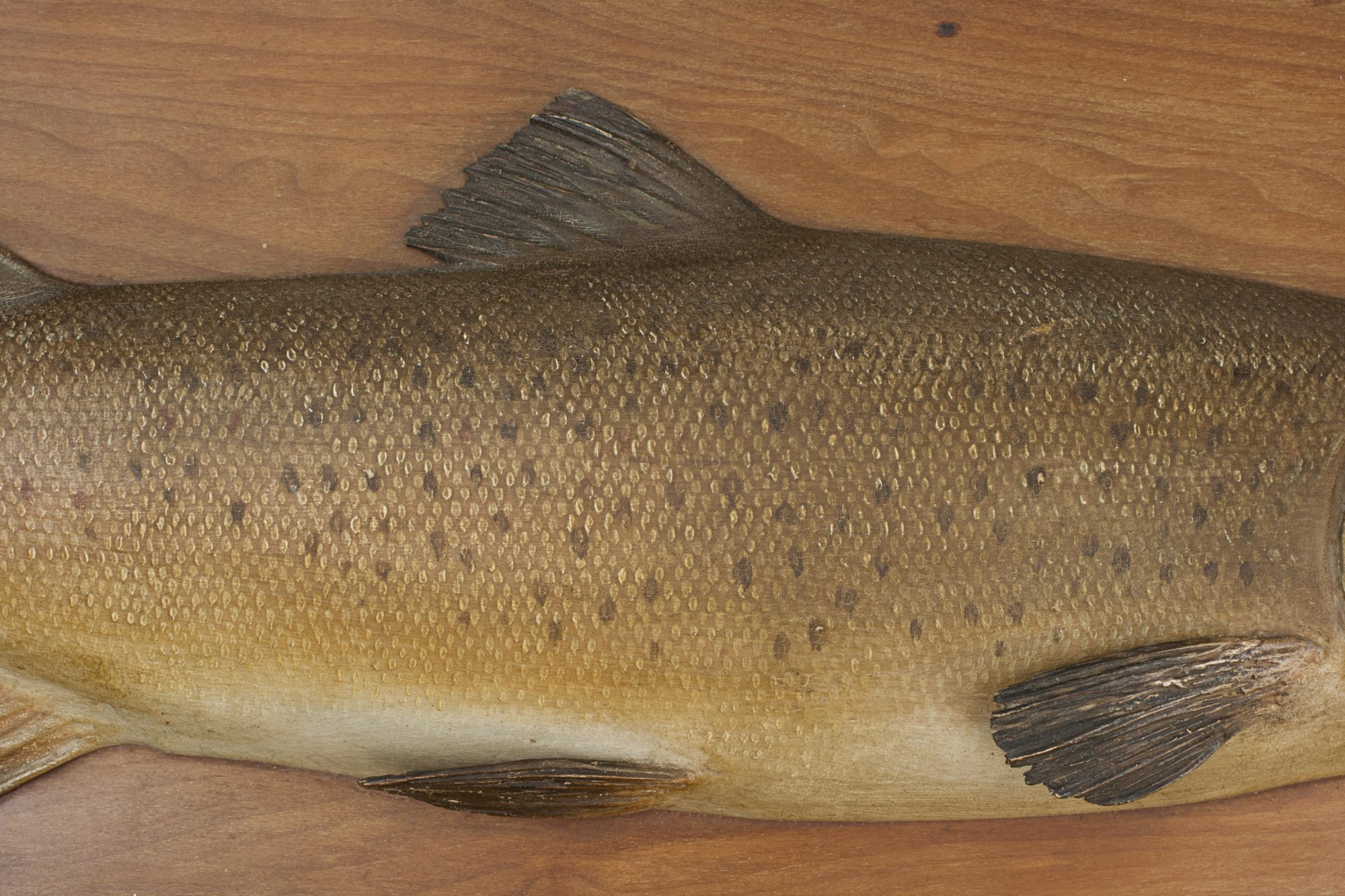 Their craftsmanship placed the Fochabers studio alongside leading British makers of carved wooden fish trophies, such as P.D. Malloch of Perth, Hardy Brothers of Alnwick, and Farlow & Co. of London-the latter for whom the Tullys produced numerous models from customer-supplied measurements and photographs. Although wooden fish models appeared in Farlow's catalogues as early as 1891, mounted examples began to feature from 1908, with earlier specimens known from the late 1890s.
