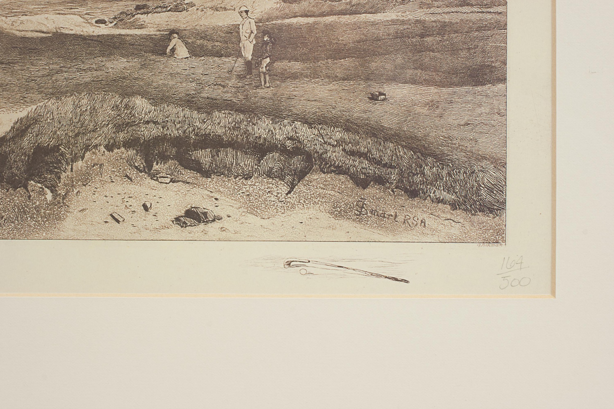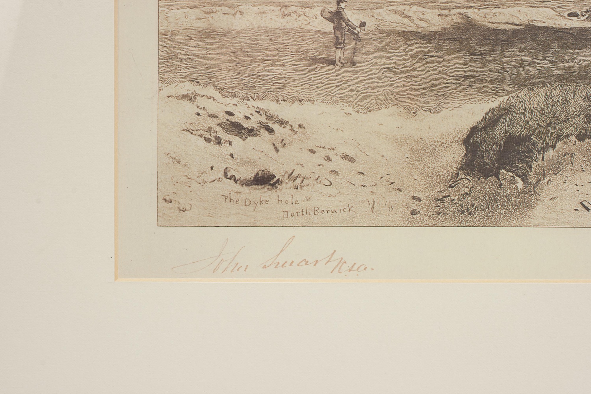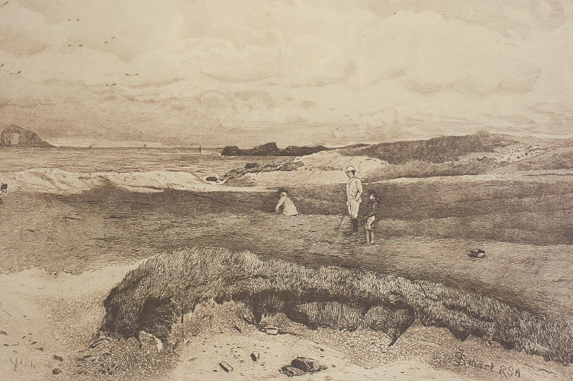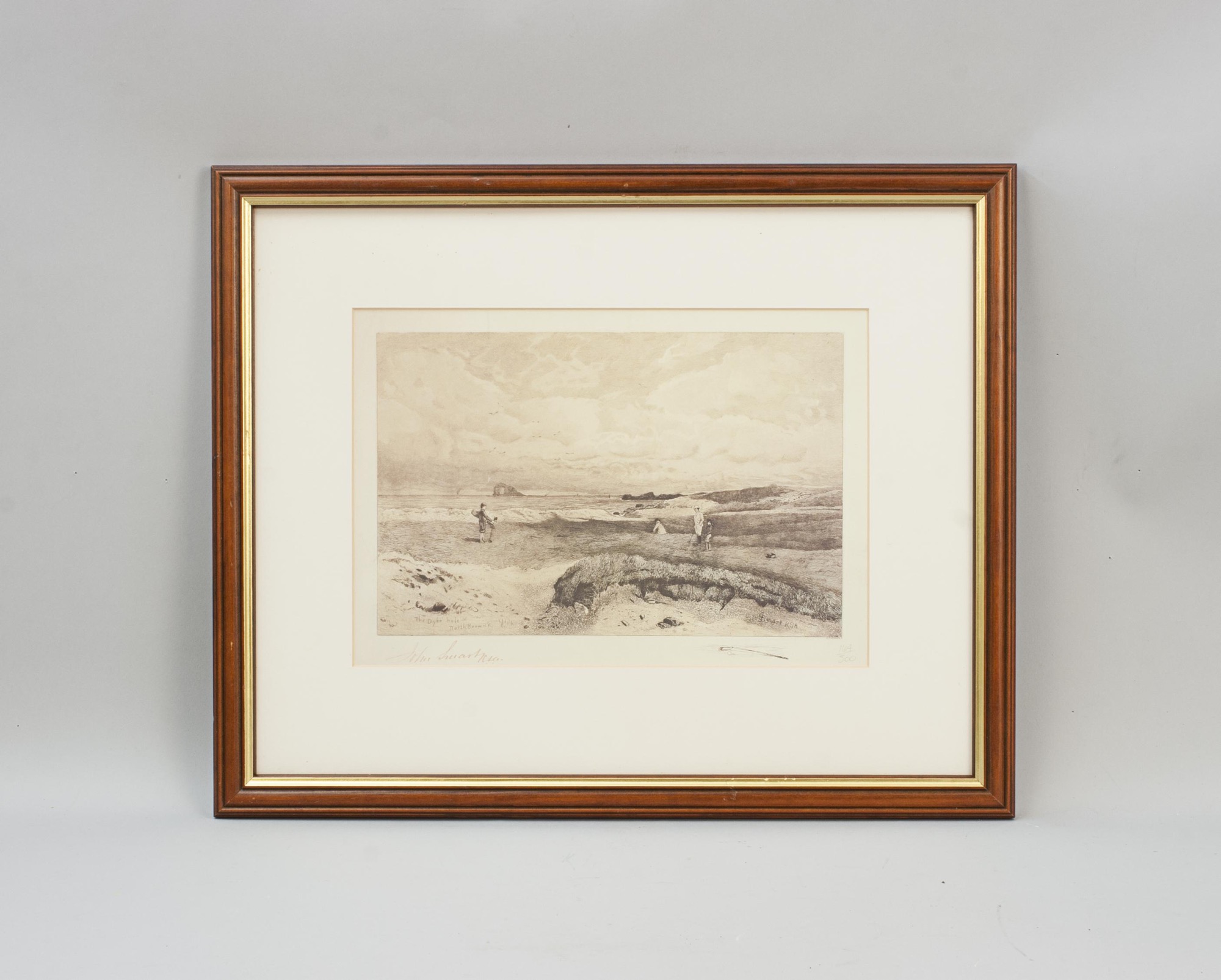 The Dyke Hole North Berwick, after John Smart RSA 1839 - 1899. John Smart painted scenes of Scottish golf courses for a bound folio in 1893. George Aikman produced the etchings from Smart's water colours for the book, which was originally published as a limited edition of 100 copies. The etching has been framed in a modern frame with mount.