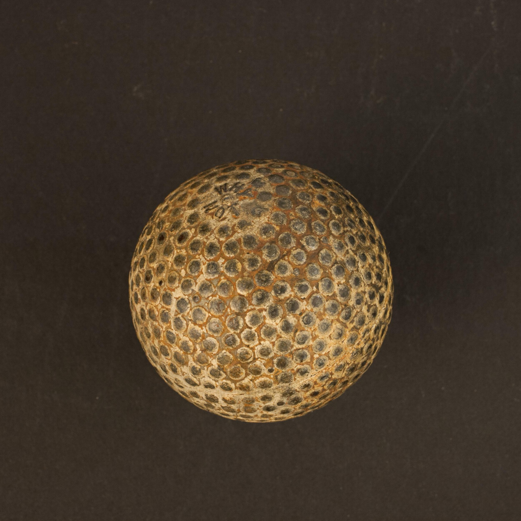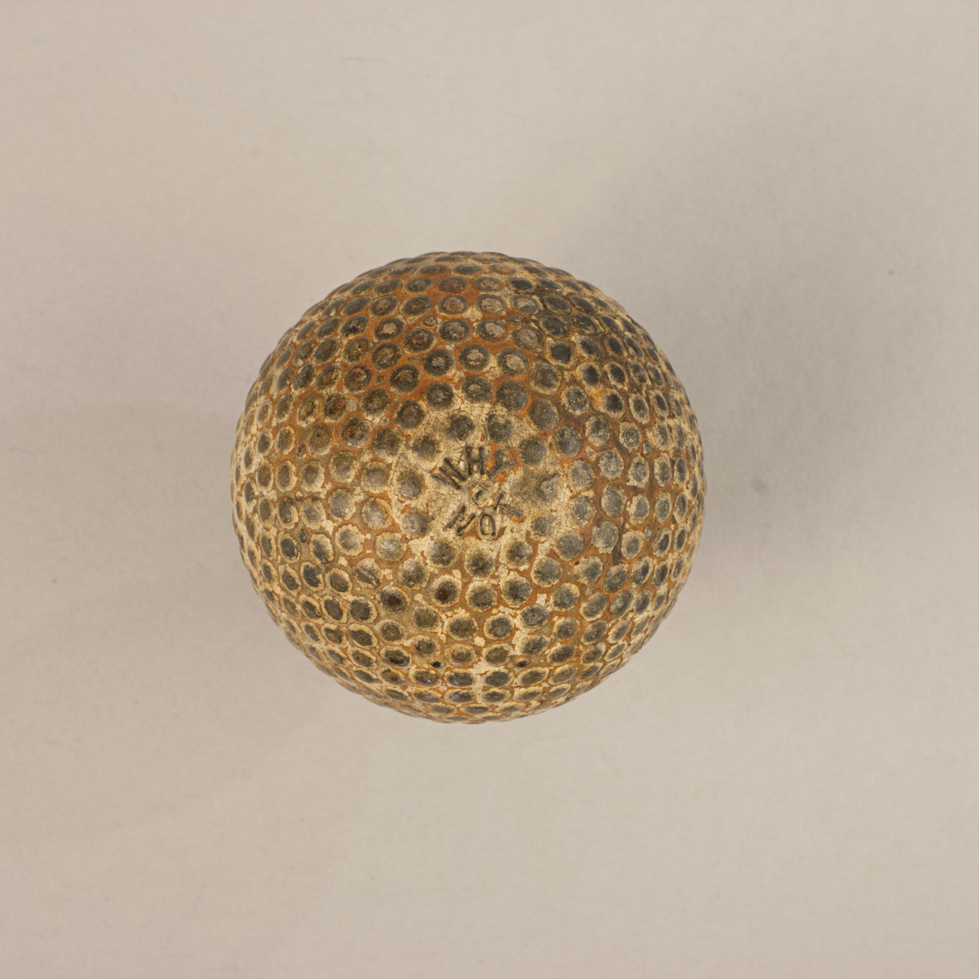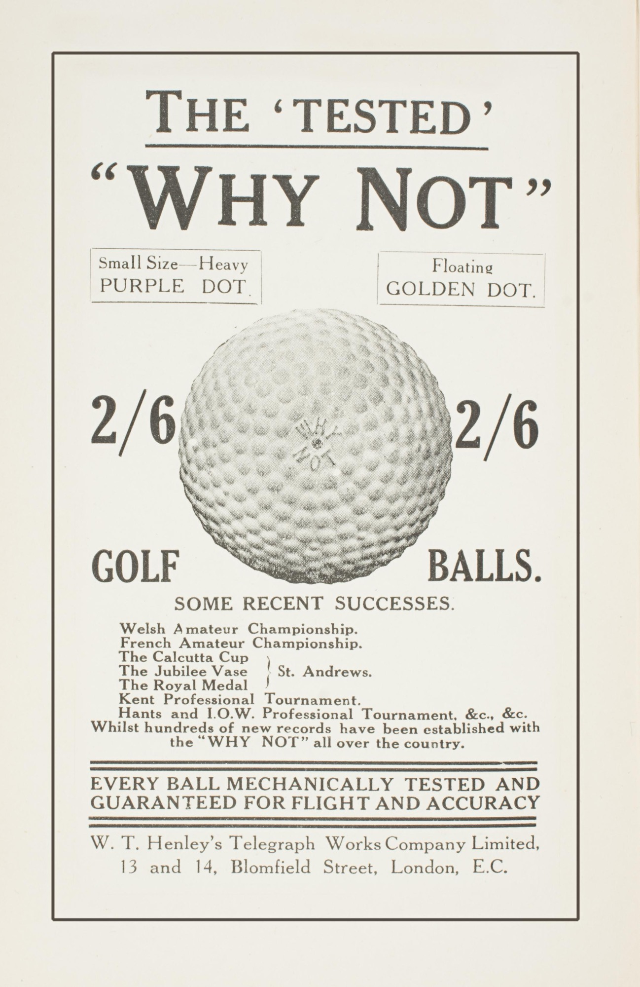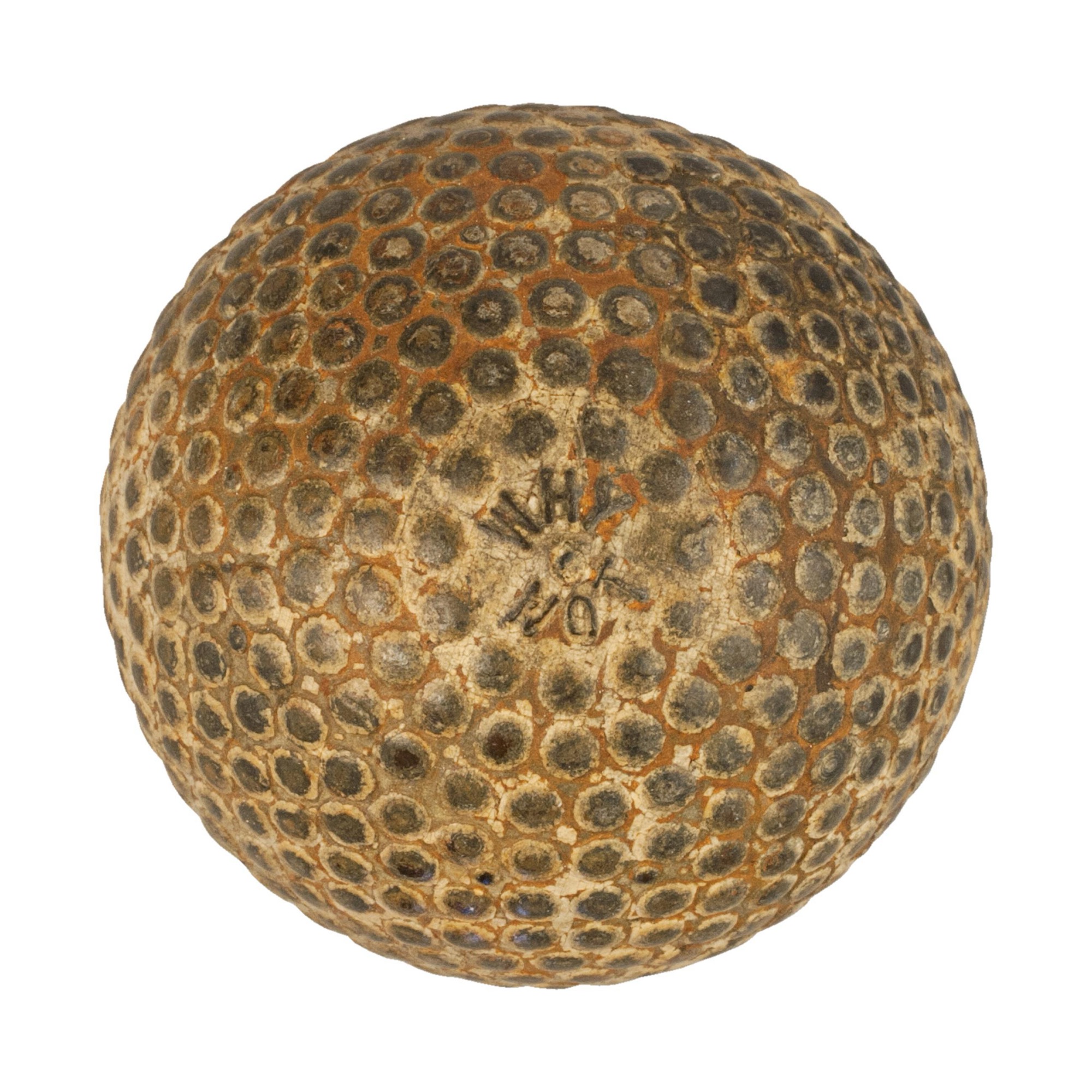 A bramble patterned rubber core golf ball manufactured by W.T. Henley's Telegraph Works Co., also known as the Henley's Tyre & Rubber Co. Ltd. London, England. The ball has 'Why Not' on both poles with a moulded bramble pattern cover of raised dimples.