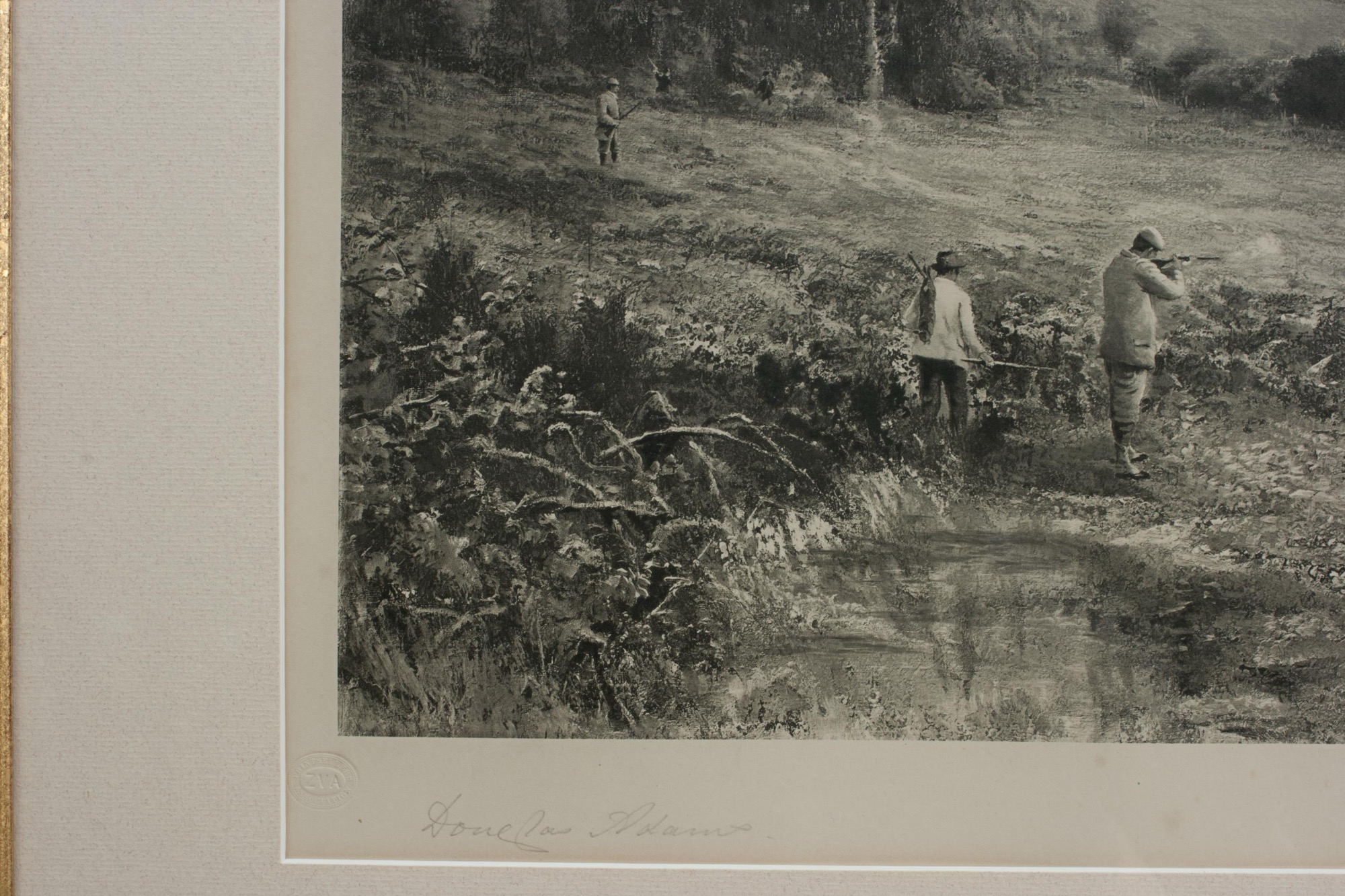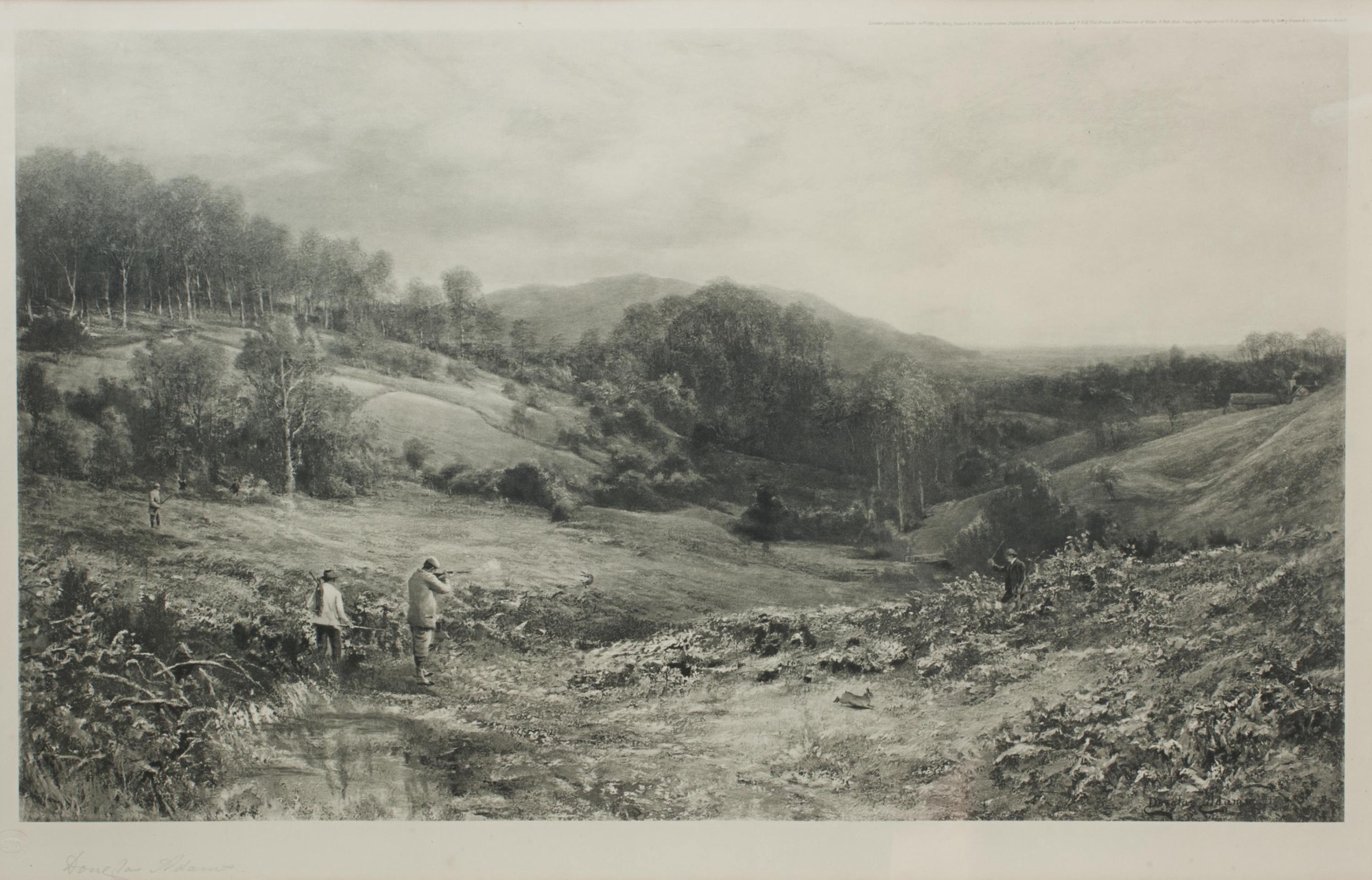 A superb shooting photogravure taken from the original painting by celebrated British artist Douglas Adams (1853-1920). This Artist's Proof is signed in pencil by the artist and bears the 'Print Sellers Association' blind stamp, confirming its authenticity and provenance.