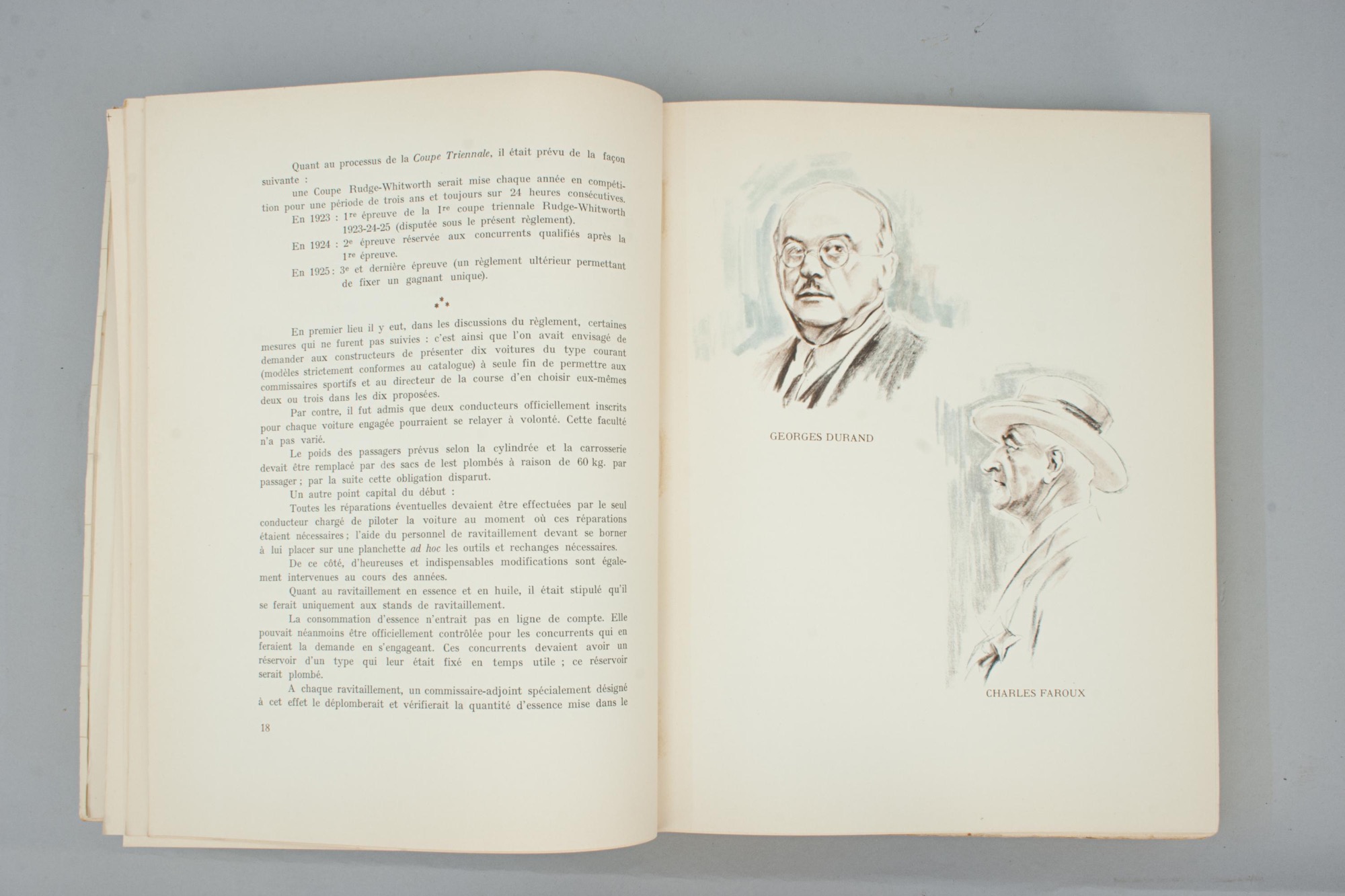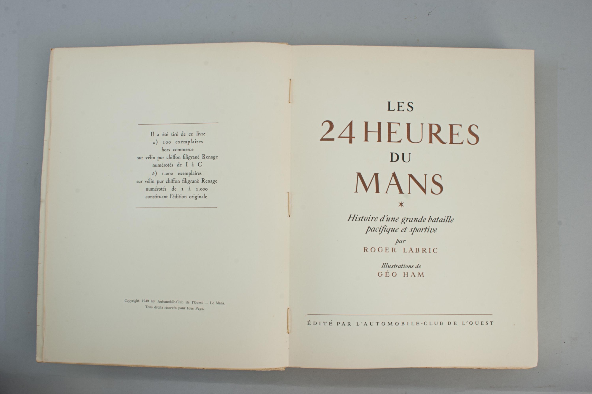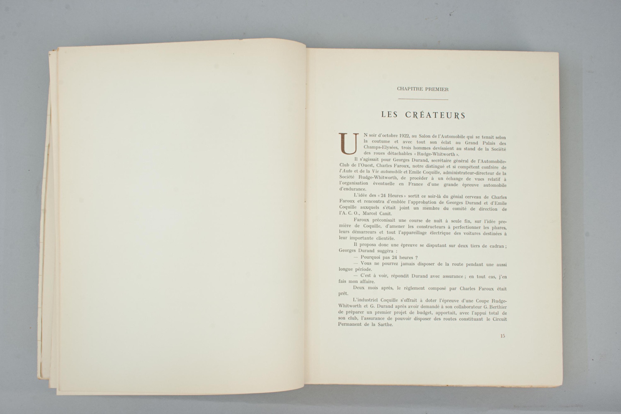A large, original French volume of Roger Labric's classic motor racing work, Les 24 Heures du Mans: Histoire d'une grande Bataille pacifique et sportive. This highly sought-after 1949 edition, published by the Automobile Club de l'Ouest, is a remarkable tribute to the world's most famous endurance race - the 24 Hours of Le Mans.