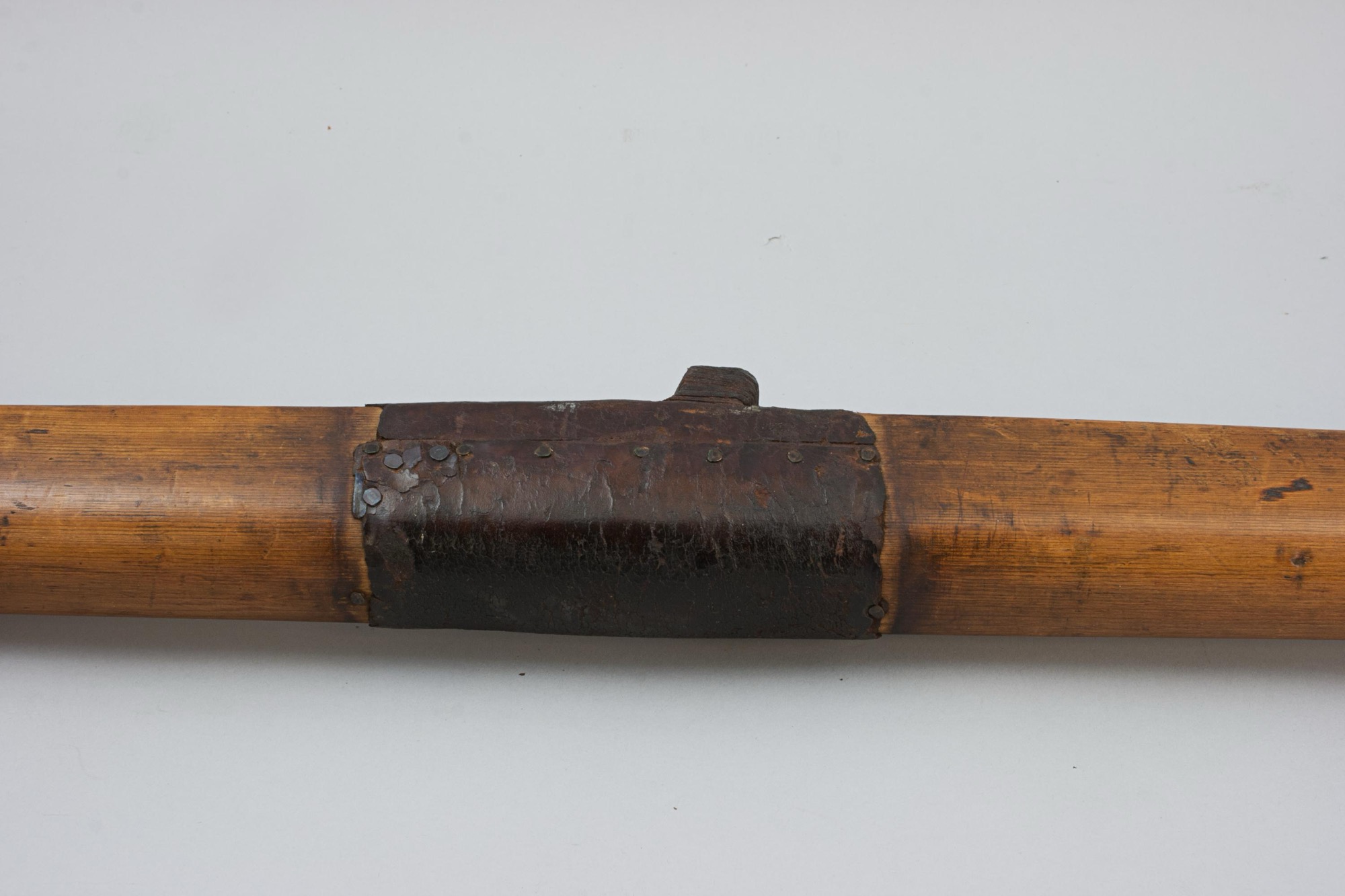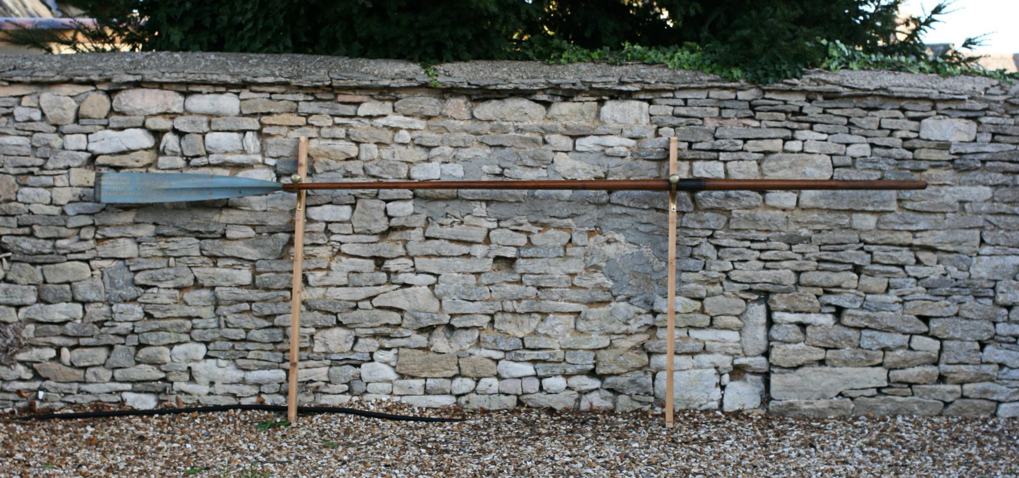As this oar is full length (12 ft), shipping can be expensive. We offer an ingenious shipping option: the oar can be cut discreetly beneath the leather sleeve, allowing it to be safely packed and later bolted back together for display. The joint is subtle and largely concealed (there is an image showing a previously cut down oar). Please enquire for details and shipping quotes.