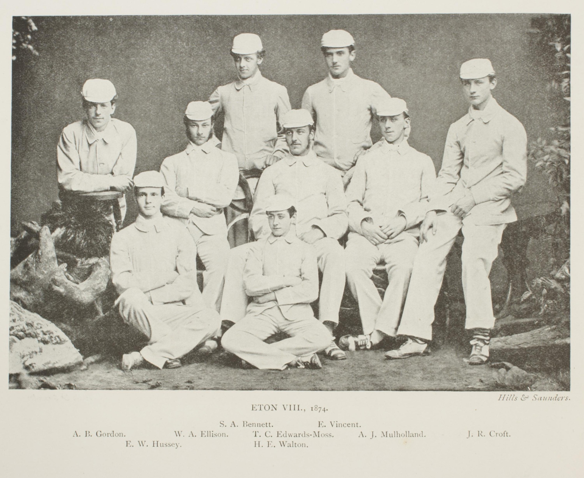 One of the images is of the Eton crew, taken from the book 'Fifty Years of Sport - Eton, Harrow and Winchester'. Another image is a photoshop mock-up of a traditional team photo.